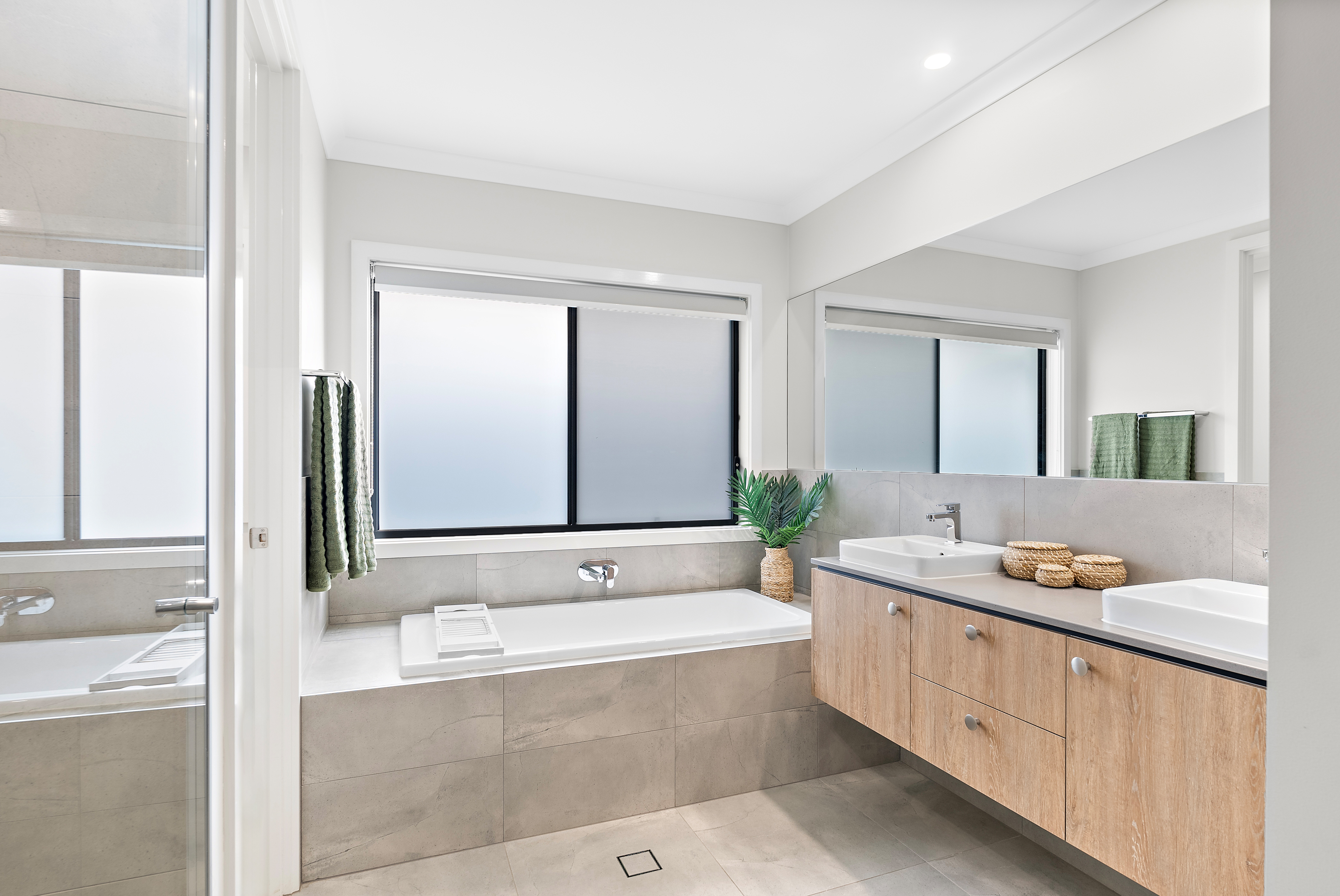 The primary suite, a true retreat, is thoughtfully separated from the rest of the home. It features generous proportions, a large walk-in wardrobe with built-in cabinetry, and a lavish ensuite boasting a double vanity, a luxurious bathtub, and a spacious shower with niche shelving. Elegant sliding stacker doors open to your own private courtyard with direct access to the pool and a beautifully maintained vegetable garden.