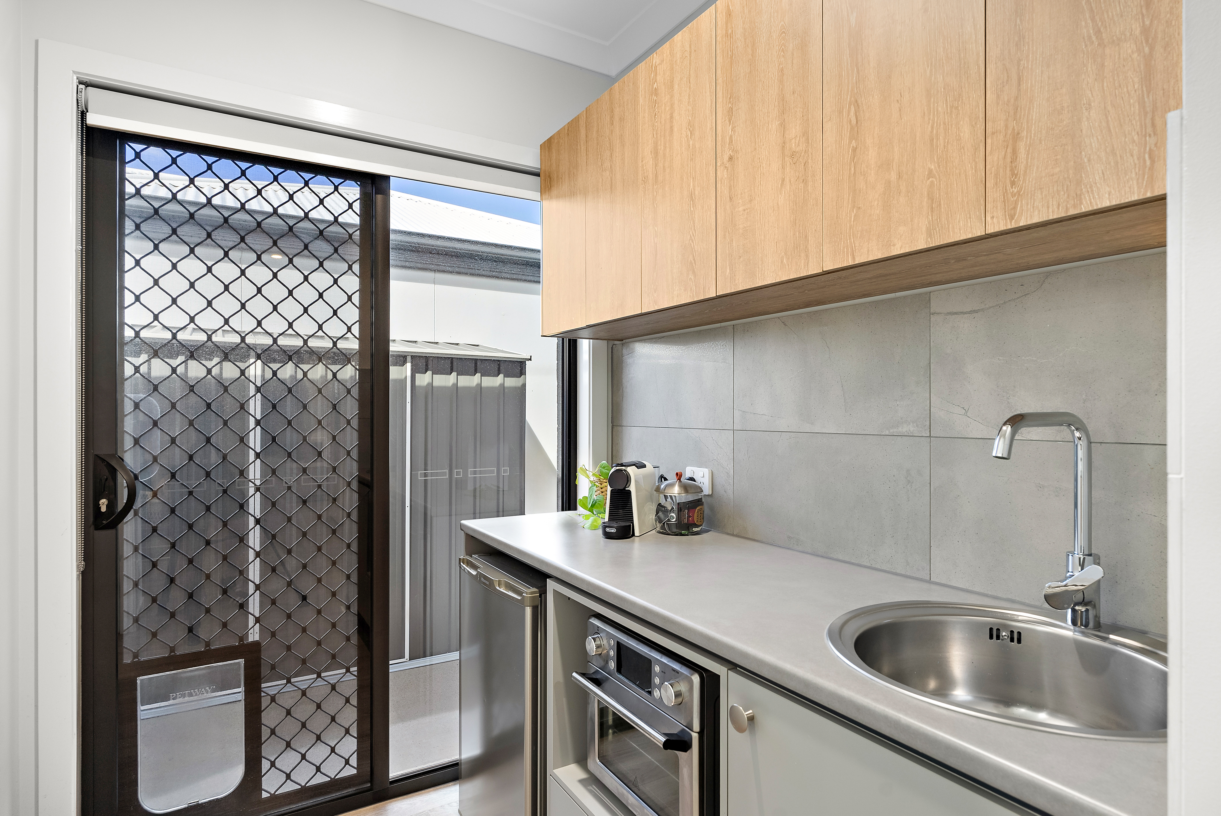 Accommodating family and guests is easy with a dedicated third living space that includes a well-equipped kitchenette, three generously sized bedrooms with built-in wardrobes, and a main bathroom with modern finishes. This area, accessible via a side gate, is perfect for a kids' retreat, guest accommodation, or dual living arrangements.