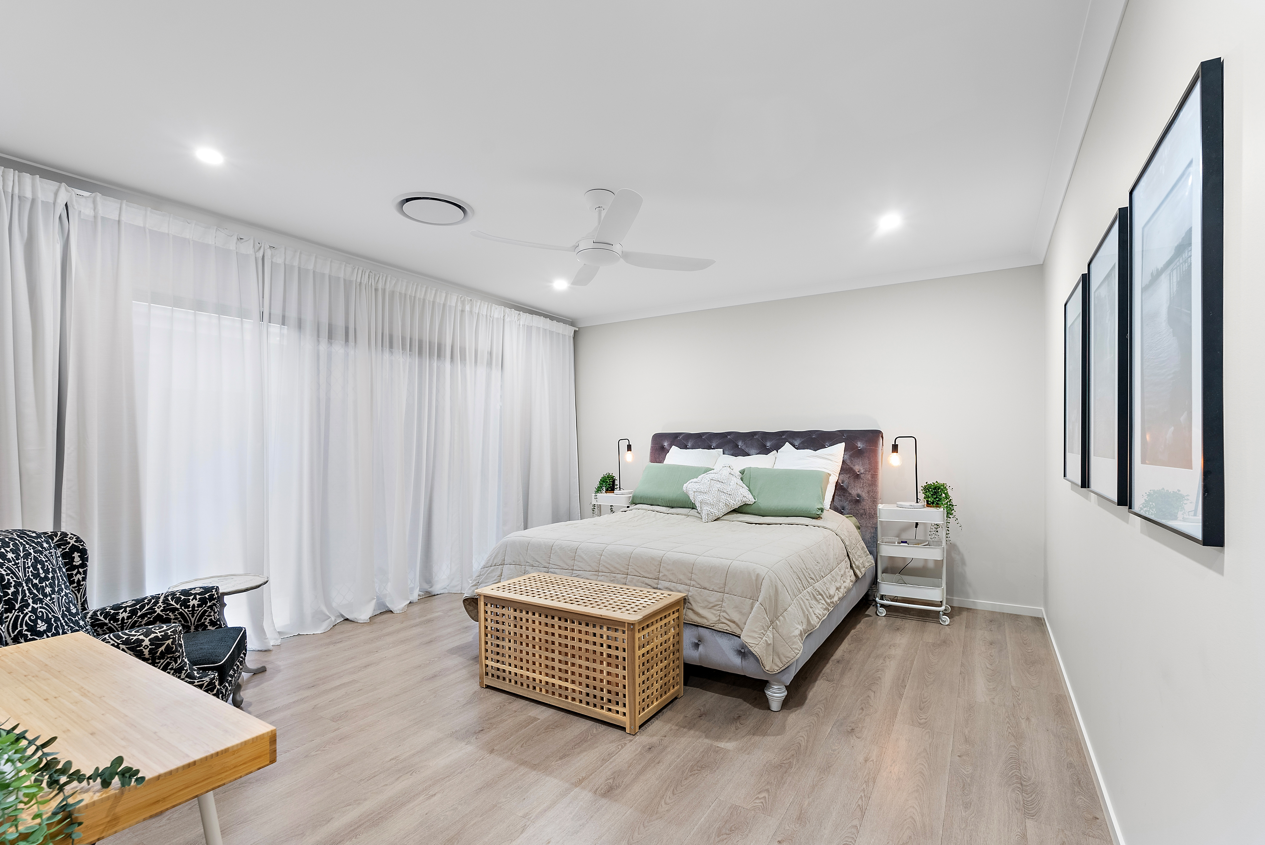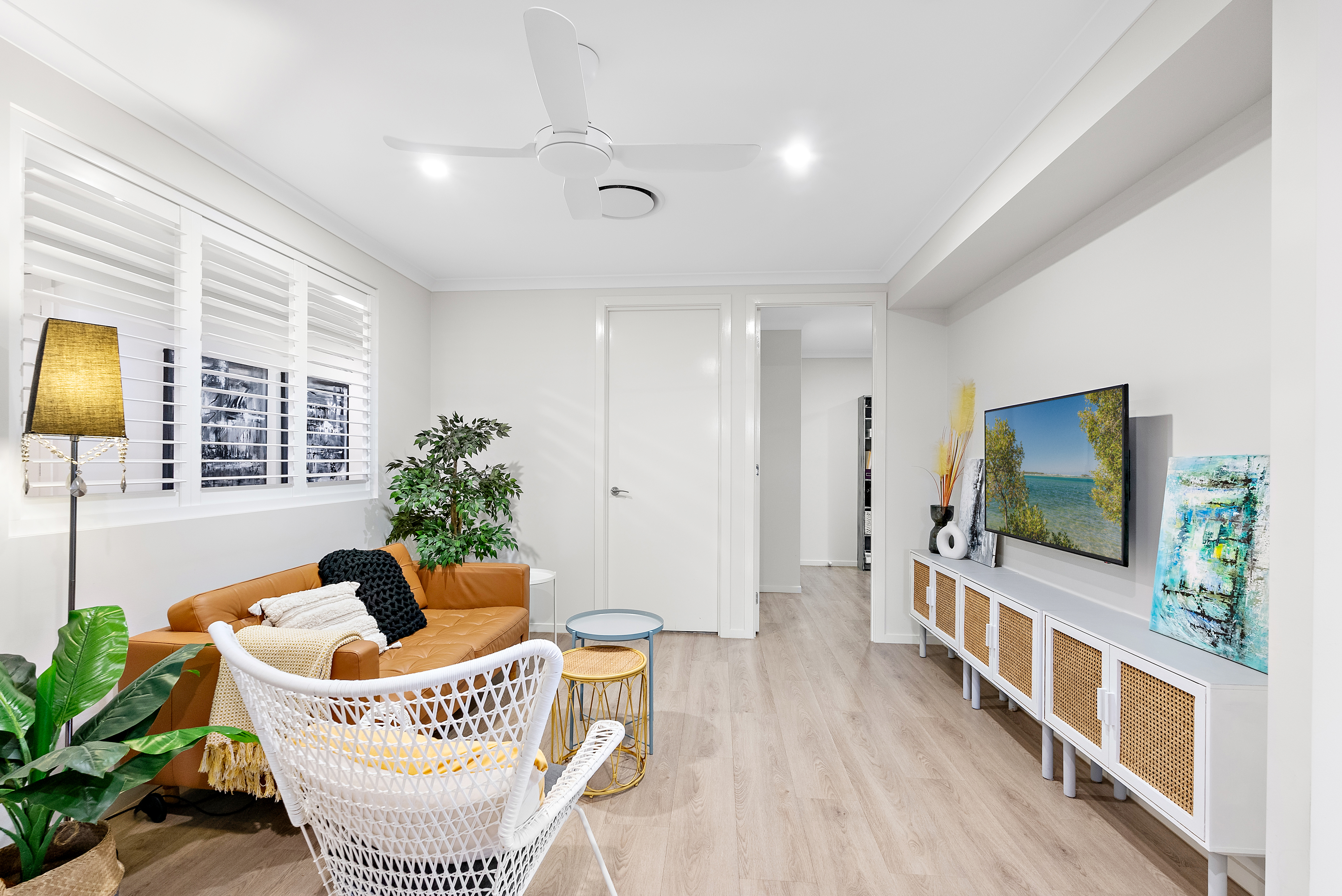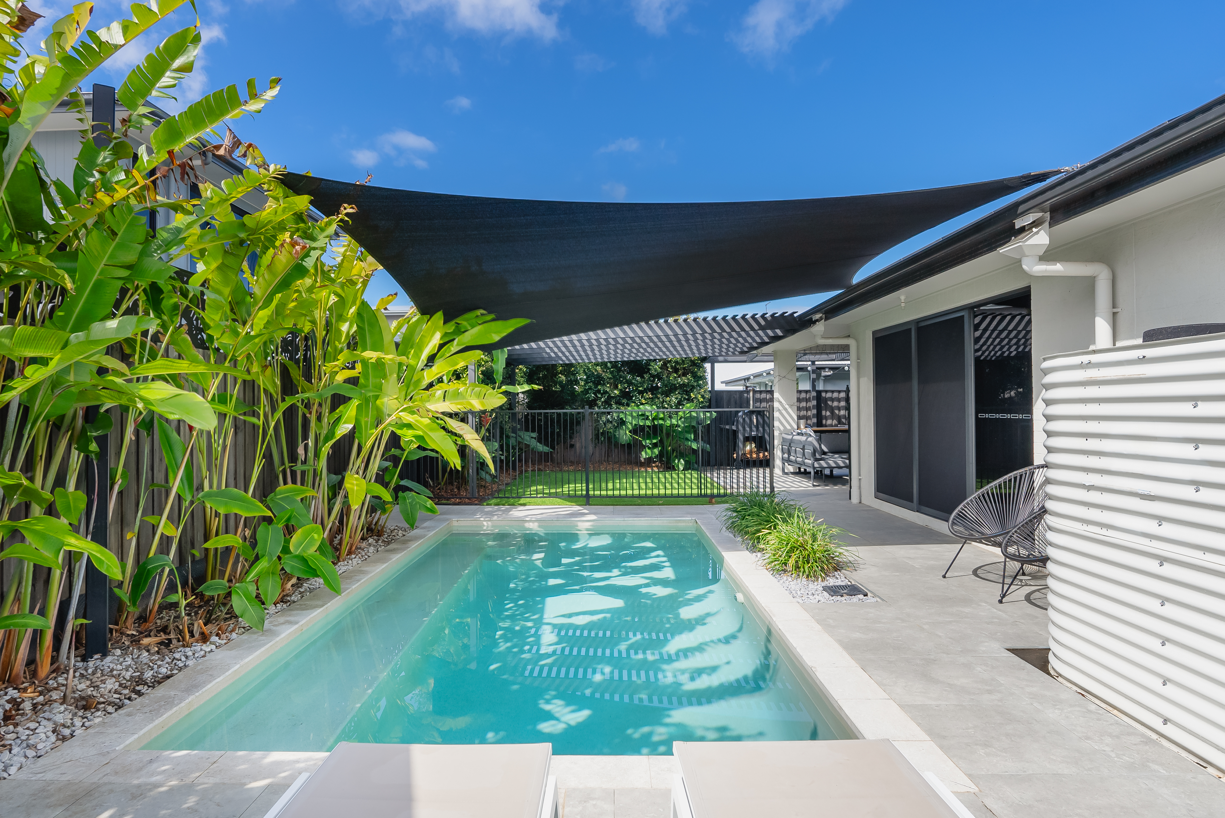 - Large media room, privately positioned at the rear of the property - Third living space with a frosted glass door and plantation shutters to separate the space - Kitchenette and sliding glass door (for separate access via side gate), making this space ideal for children or guests - Three generously sized bedrooms off the third living space, each with built-in wardrobes and ceiling fans - Main bathroom with a full wall-width mirror, bath, shower, niche shelving, and adjustable shower head - Separate powder room with basin, vanity, and feature tile - Opulent primary bedroom with generous proportions and sliding stacker doors opening to a courtyard and garden that leads to the pool - Walk-in wardrobe with built-in cabinetry and feature shelving at the entrance - Ensuite bathroom with double vanity, bathtub, shower with niche shelving, adjustable and rainfall shower heads, and a separate toilet - Double garage with epoxy flooring and sliding door access to the side of the property - Laundry equipped with direct access to the clothesline, cabinetry, and ample storage - Hidden linen press behind a feature wall - Solar panels (10kW) - Ducted, zoned air-conditioning - Ducted vacuum system - Premier Typhoon with ample outlets throughout the property - Micron smart video doorbell - Hardwired security cameras - Wood-effect vinyl planking throughout - Tiles in wet areas - 2.7m ceiling height - LED downlights throughout - Wide concrete paths wrapping the perimeter of the property - Garden beds with established plants and privacy, as well as a herb garden lining the fences - Dual living potential - Water tank - Security screens throughout - Stunning window coverings throughout - Low-maintenance gardens and a large yard - Fully fenced and private yard - Premium fixtures and fittings throughout - Within walking distance of Baringa Shopping Village, tavern, and excellent educational facilities such as Baringa State Primary School, Baringa State High School, and Unity College - Easy access to the beautiful beaches, charming cafés, shops, and restaurants of Caloundra - Excellent transport connections ensure seamless travel throughout the Sunshine Coast - Conveniently located close to Sunshine Coast University Hospital - Easy access to Brisbane and Brisbane Airport via the Roy's Road link or the M1 North exchange, making both local and city travel a breeze