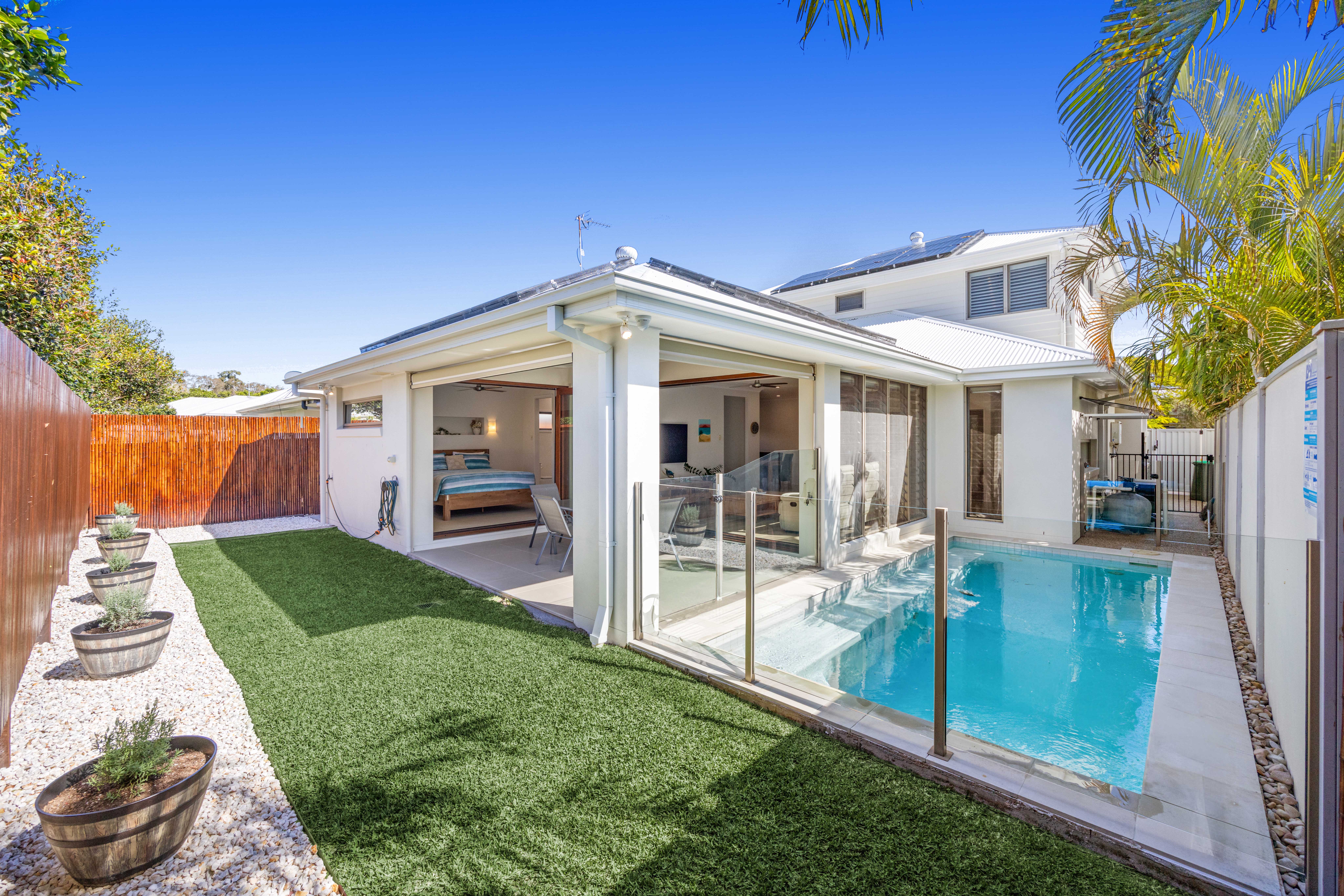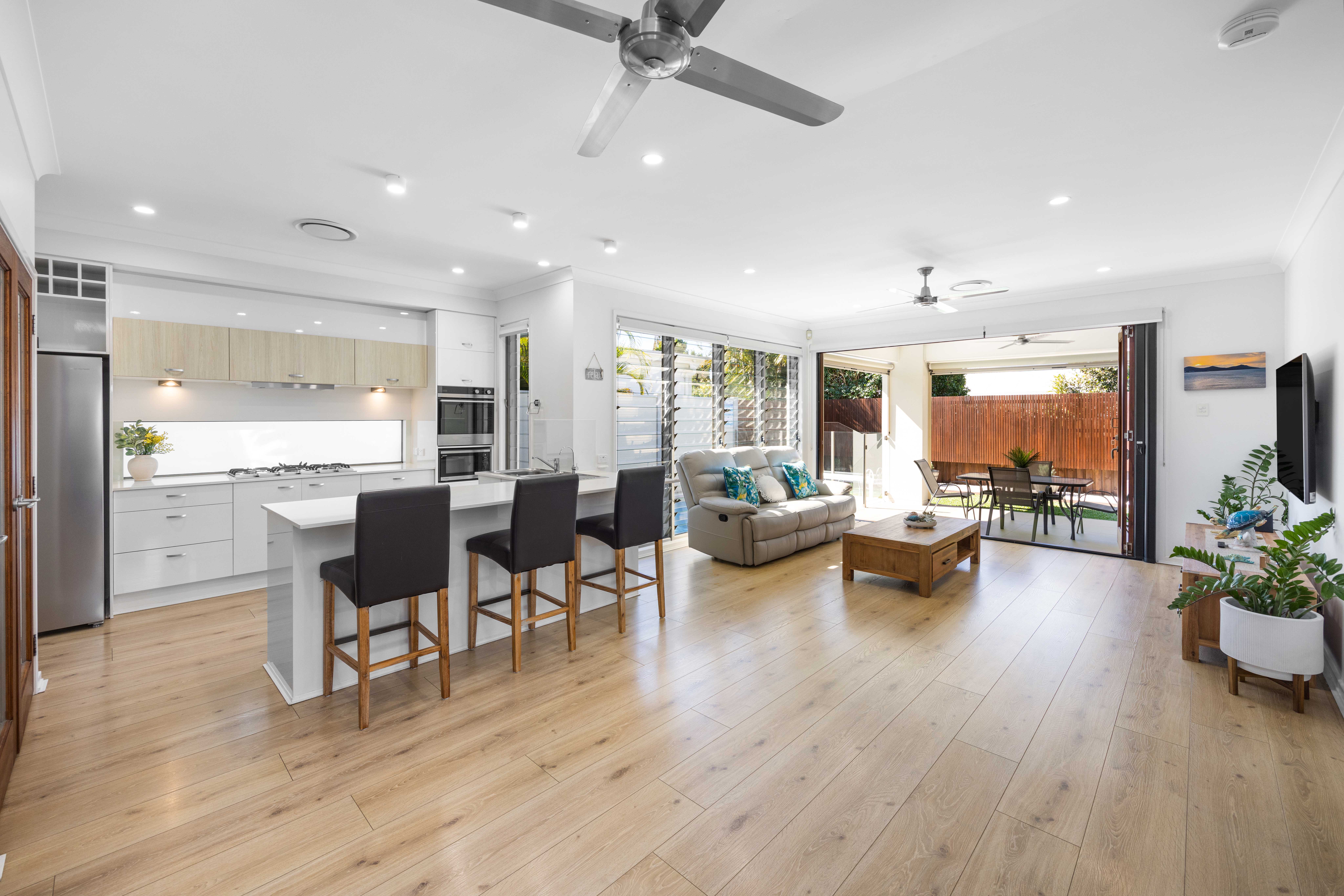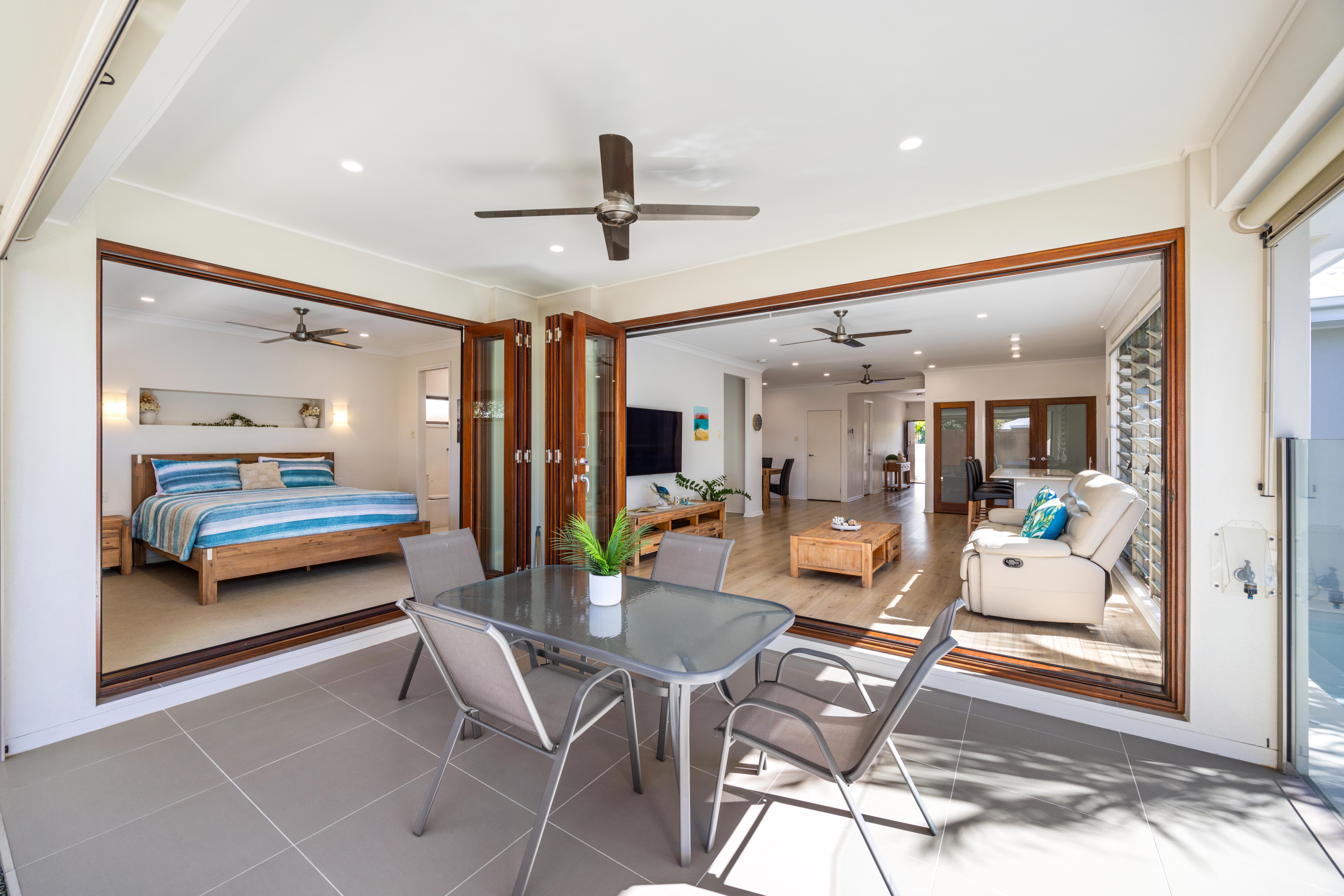 - 9.45kW LG solar panels with Fronius solar inverter (includes remote access) - 3 phase power - Wired in security cameras (with remote access) & security alarm system - Fibre to the premises NBN ready - Retractable screens for multi fold doors. - Gas downstairs cooktop & hot water - Ceiling fans in all bedrooms & living areas - Fully self-contained one-bedroom flat upstairs - previously listed on AirBnB - Low-maintenance yard & gardens