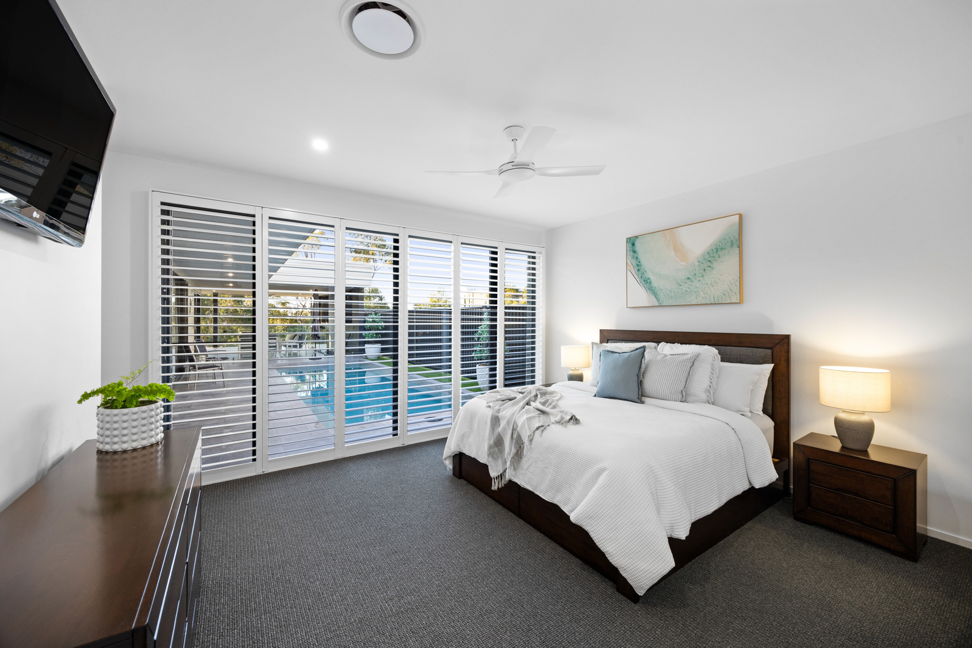 • Sumptuous Bedrooms: Four generously sized bedrooms provide serene retreats, each offering ample storage, premium finishes, and abundant natural light. The master suite is a true sanctuary with tranquil pool views and offers a luxe en suite plus huge walk-in robe