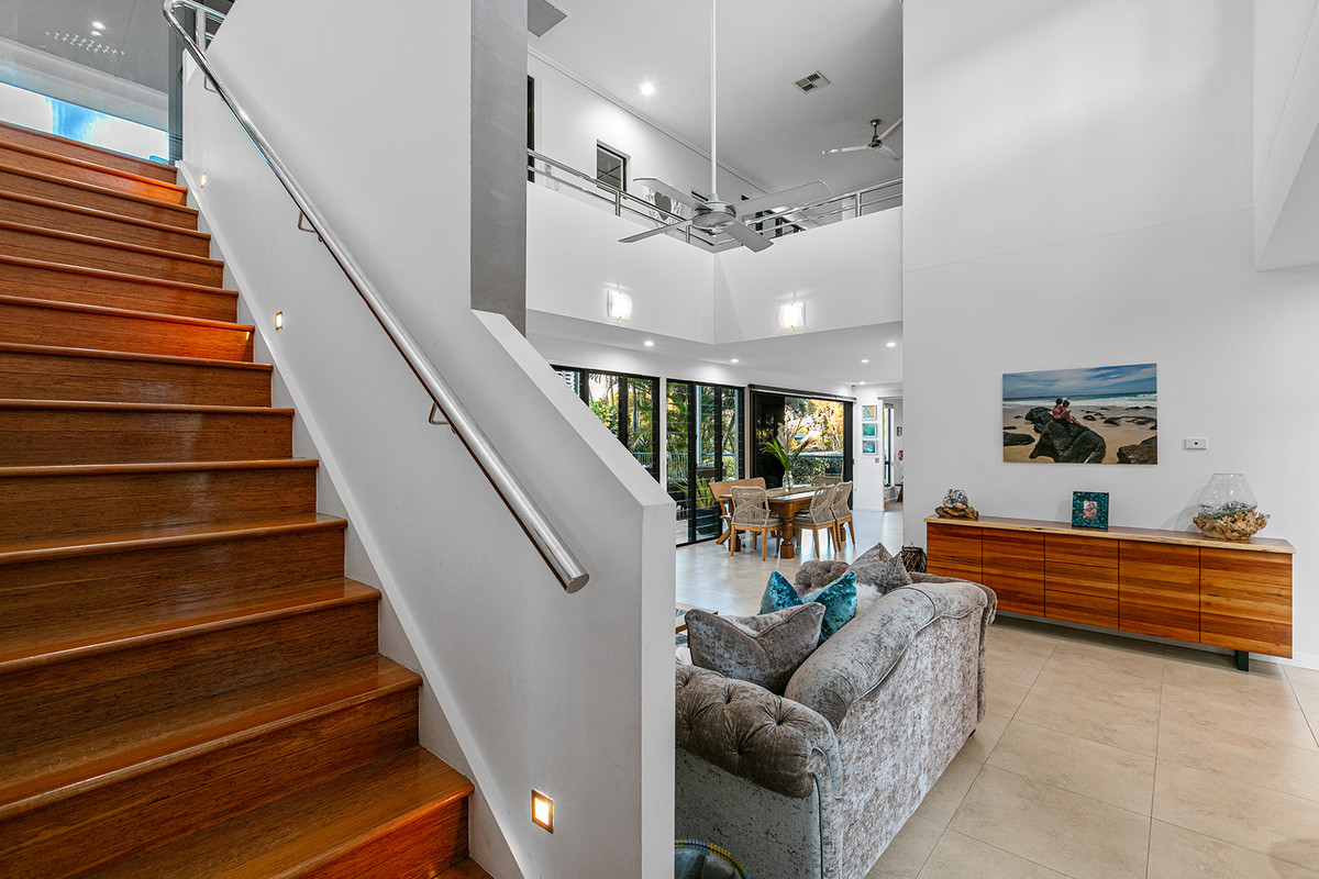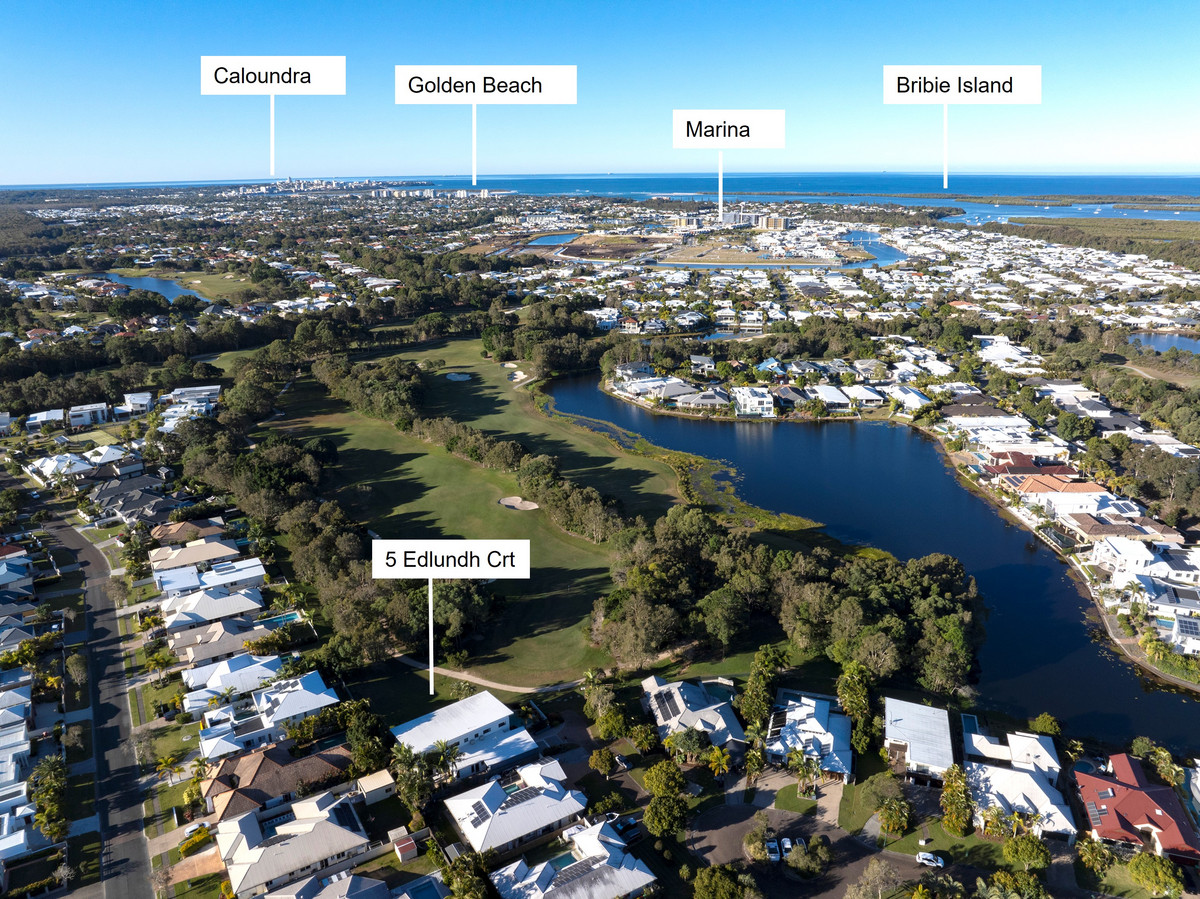 Priced to Sell!! Welcome to 5 Edlundh Court, a superb, generously scaled masterpiece nestled on the fringe of the lush Pelican Waters Golf Course.