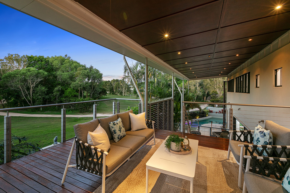 Stunning contemporary residence Beautiful Pelican Waters Golf Course as your backdrop Coveted N/E outdoor space