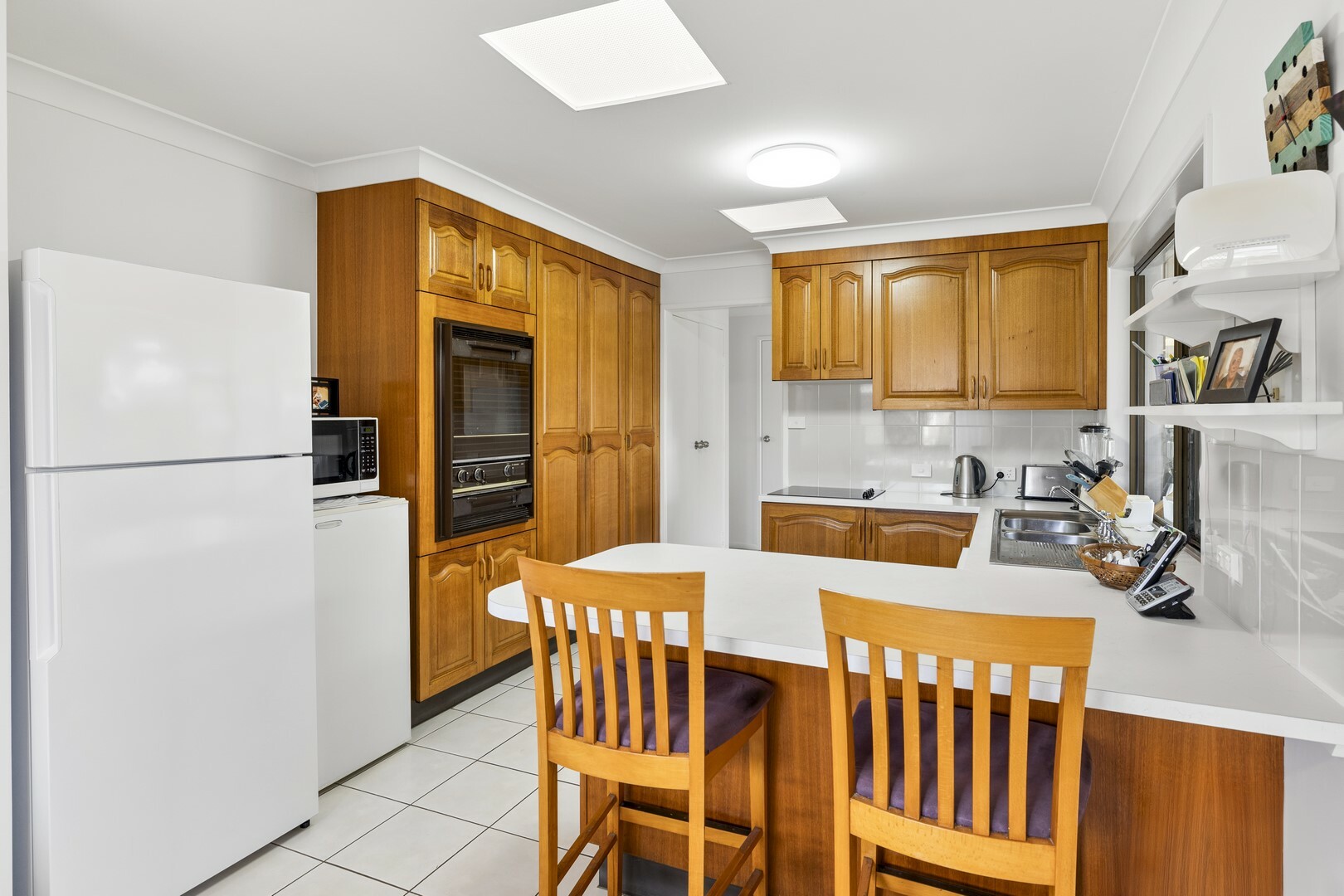 The kitchen is well equipped with ample storage cupboards, plenty of bench space, a dishwasher and breakfast bar.
