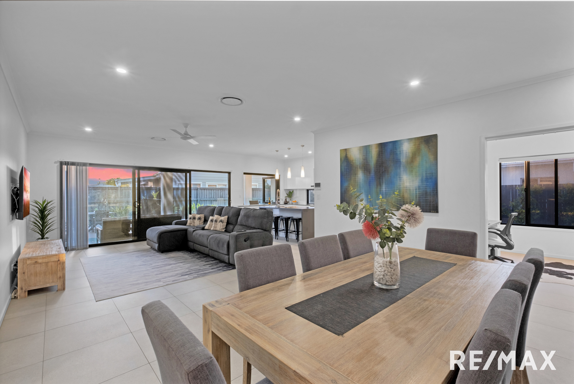Across a single level with a well-designed floor plan to facilitate excellent separation and wonderful family-friendly living; the home comprises four bedrooms plus office, two bathrooms, three separate living areas (including media room), premium kitchen with butler's pantry and servery window to rear alfresco terrace overlooking inground pool, separate laundry, and double lock-up garage with drive-through access on one side.