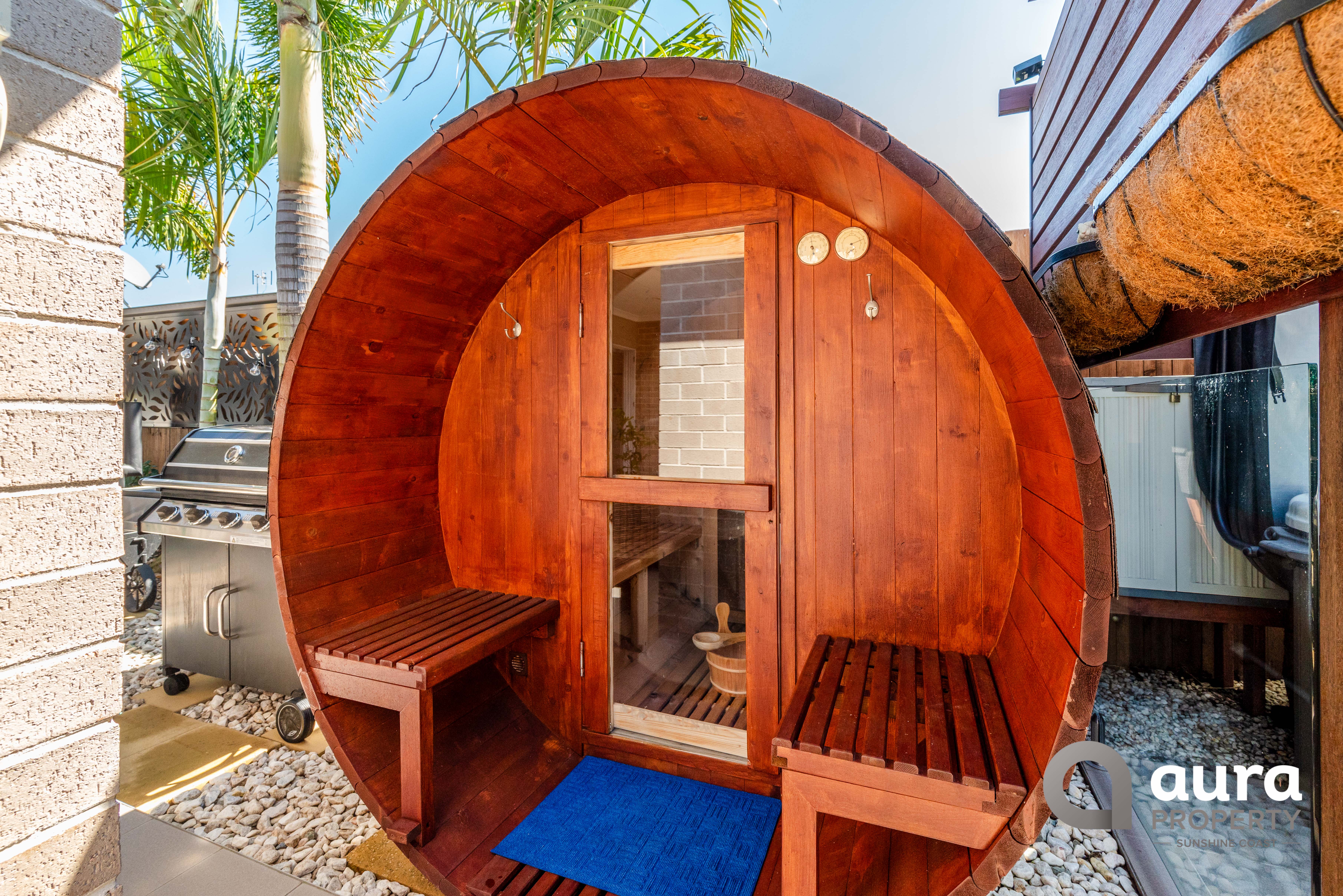 The many features include: - 268m2 home - 448m2 block - Zoned ducted air-conditioning - 6.4kw solar - 13kw Tesla Powerwall Battery - Outdoor Spa with pergola - Premium Sauna - Gas fireplace