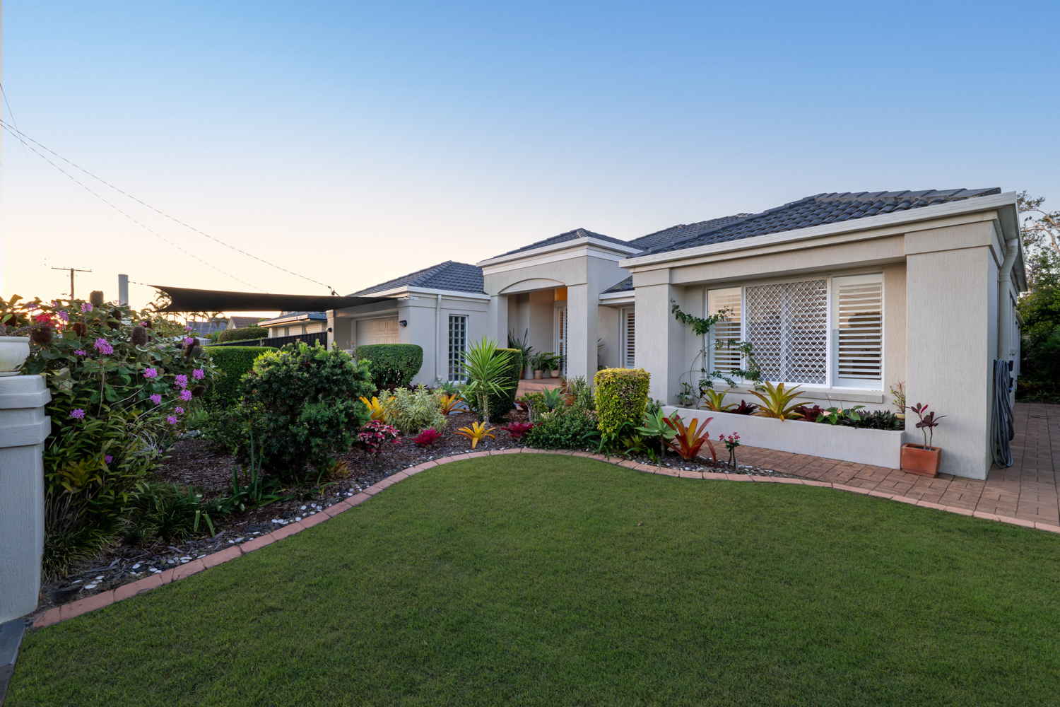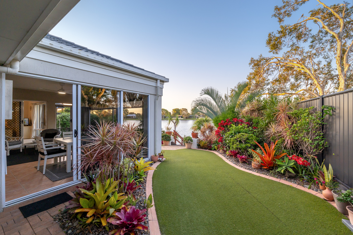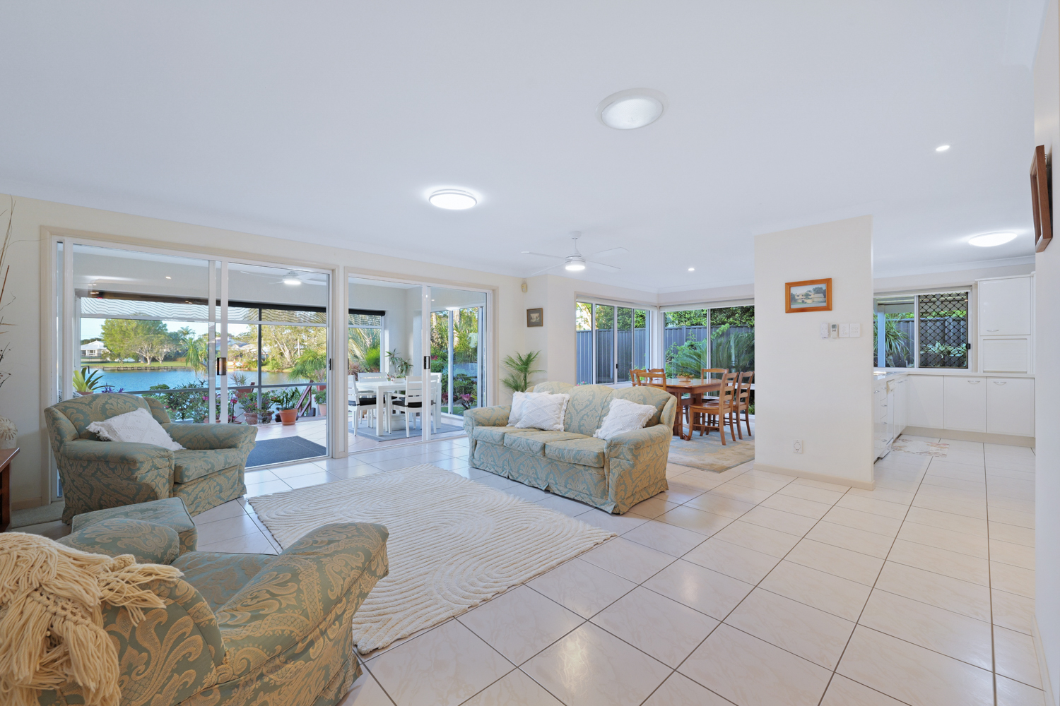 - Walking distance to Golden Beach Esplanade, shops, cafes, restaurants and Power Boat Club - Single level north facing lakefront home - 4 good size bedrooms with master overlooking the water - Open-plan kitchen, dining and living area with lake views - Centrally located living room - Separate study/multi-purpose area - Lovely garden room - Peaceful and quiet location - Enclosed front garden with single and double gates for easy access