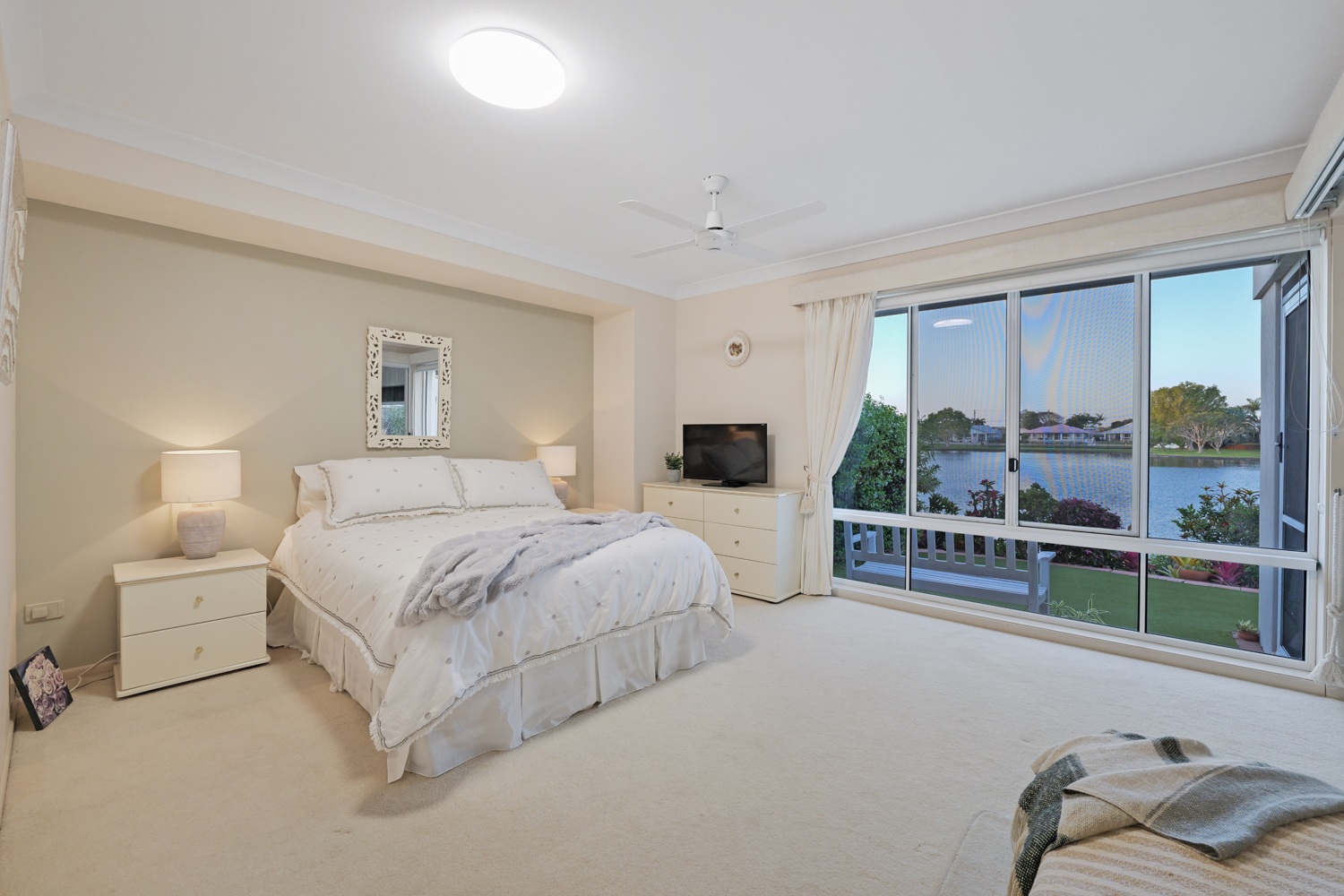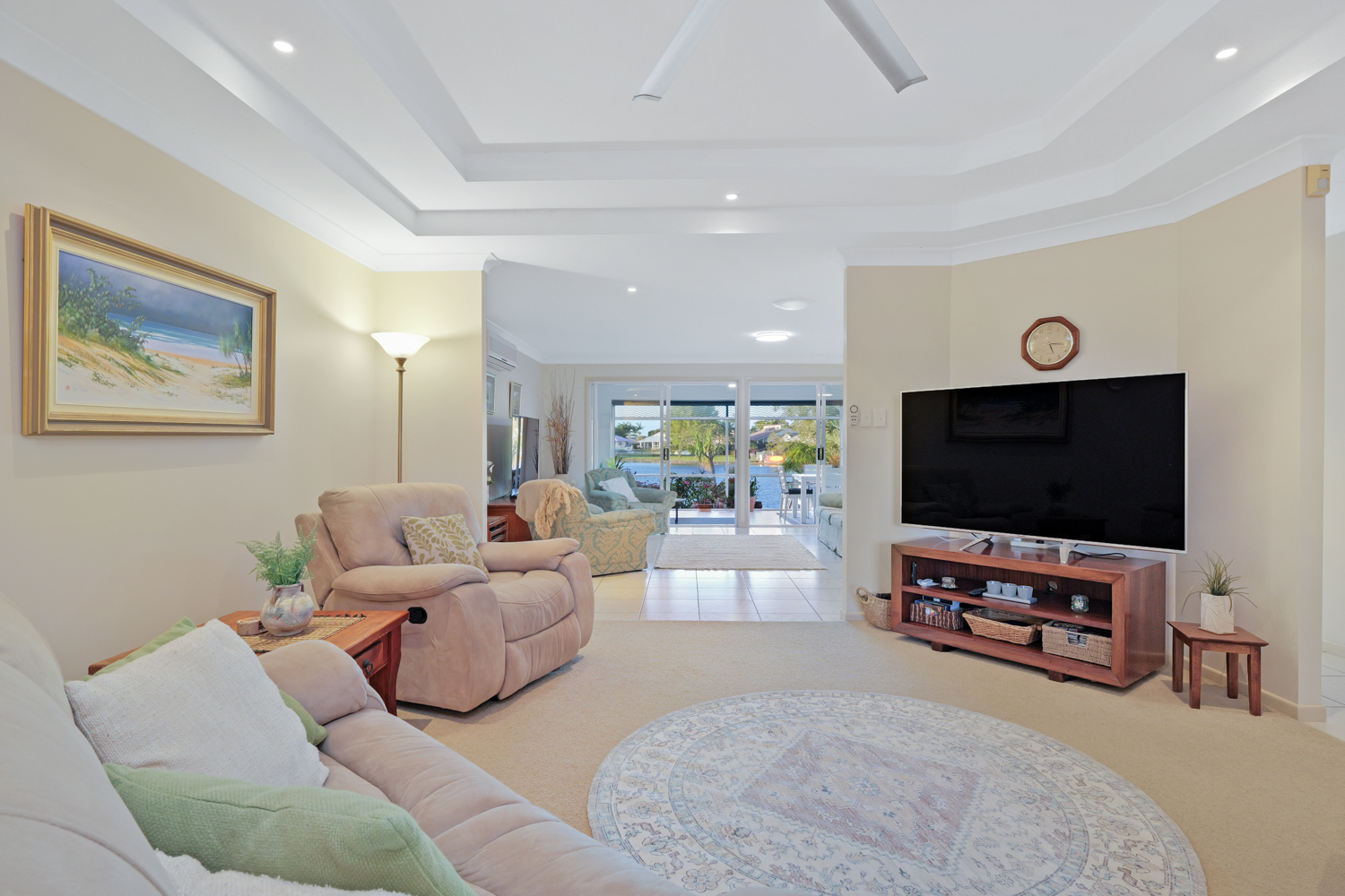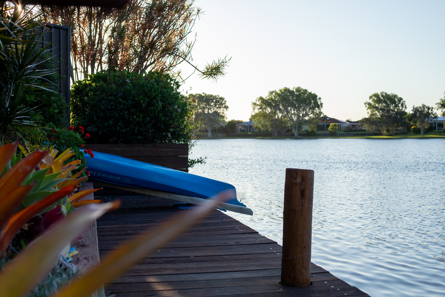 - Walking distance to Golden Beach Esplanade, shops, cafes, restaurants and Power Boat Club - Single level north facing lakefront home - 4 good size bedrooms with master overlooking the water - Open-plan kitchen, dining and living area with lake views - Centrally located living room - Separate study/multi-purpose area - Lovely garden room - Peaceful and quiet location - Enclosed front garden with single and double gates for easy access