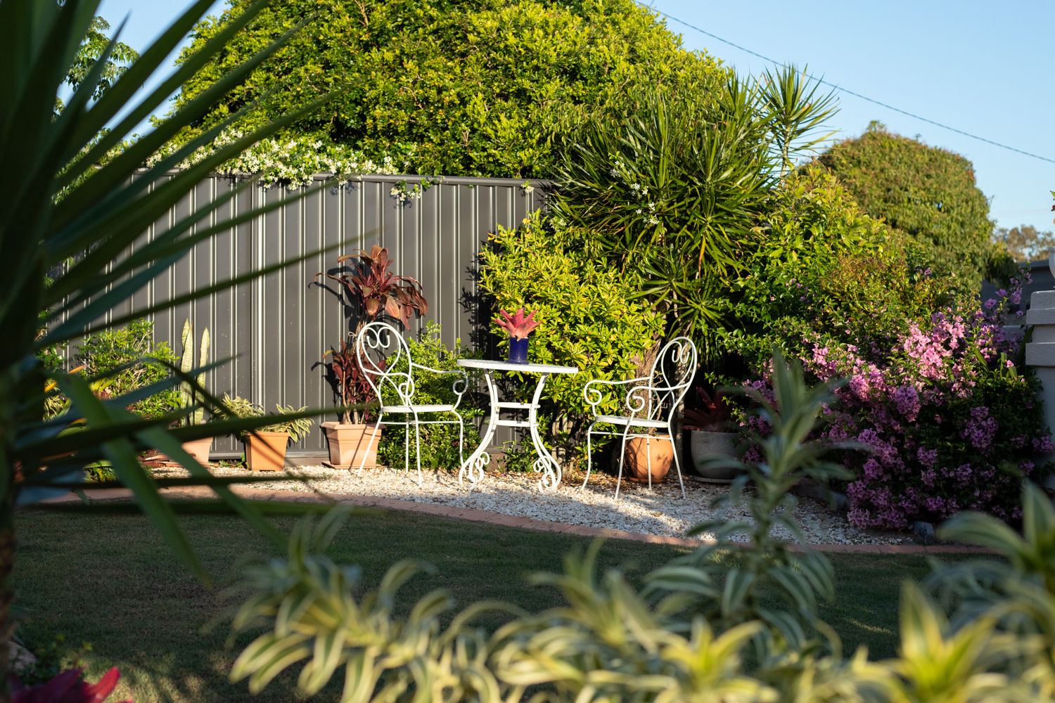 The exterior is complemented by a sizable driveway shaded for your convenience, an enclosed front garden with double gate access, and a lovingly maintained yard that enhances the overall charm of the property.