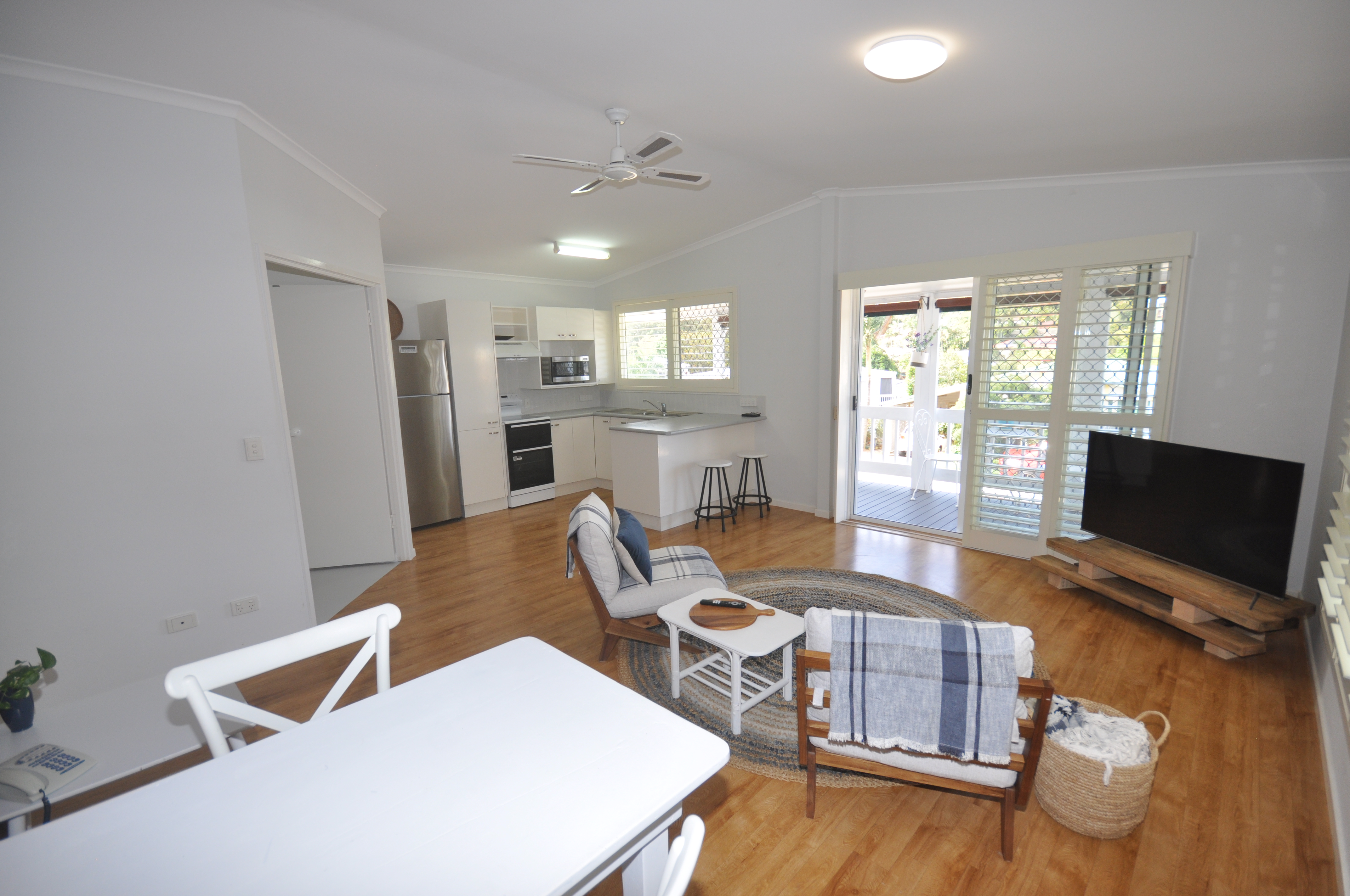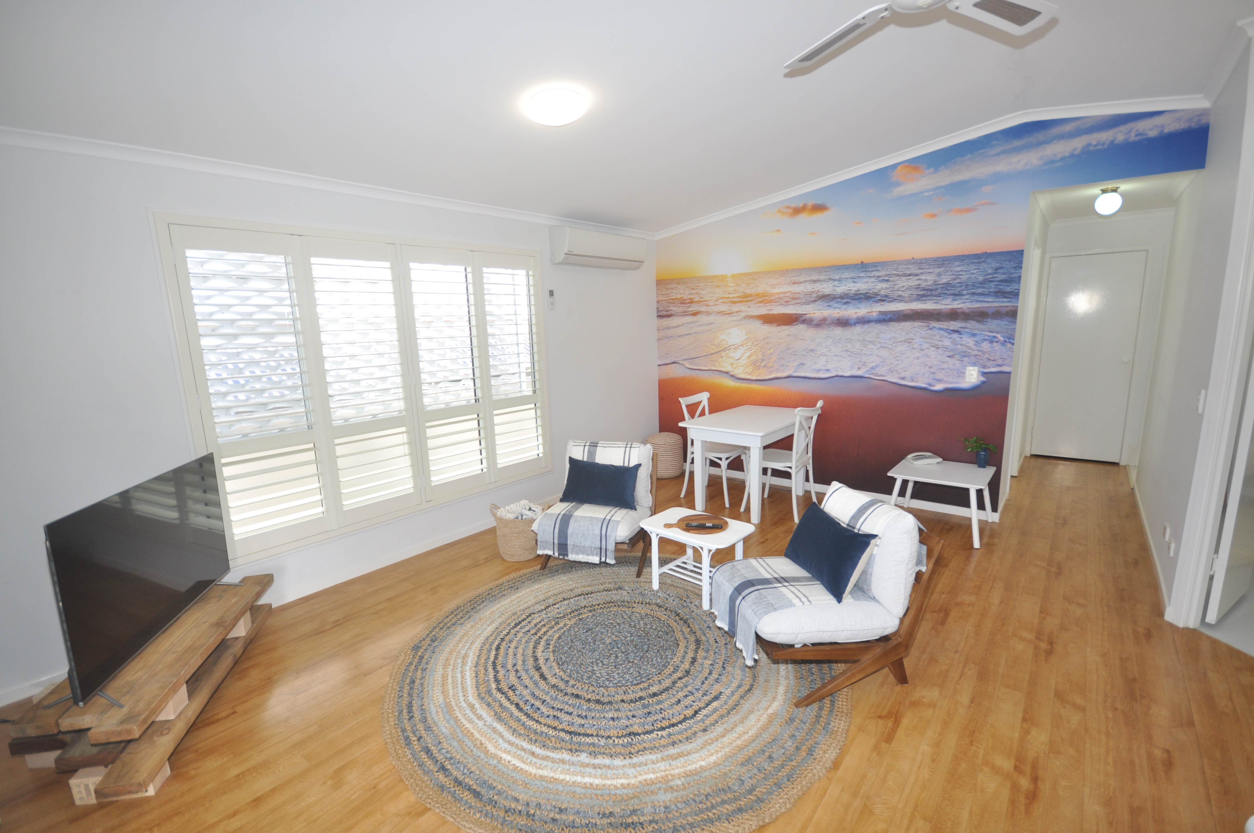 Inside, you’ll find a tastefully decorated space with a beachy, boho vibe, highlighted by a stunning feature wall in the lounge that’s sure to impress. The master bedroom is generously sized, and the home boasts laminate timber floors, remote garage access, and elevated views from the front patio.
