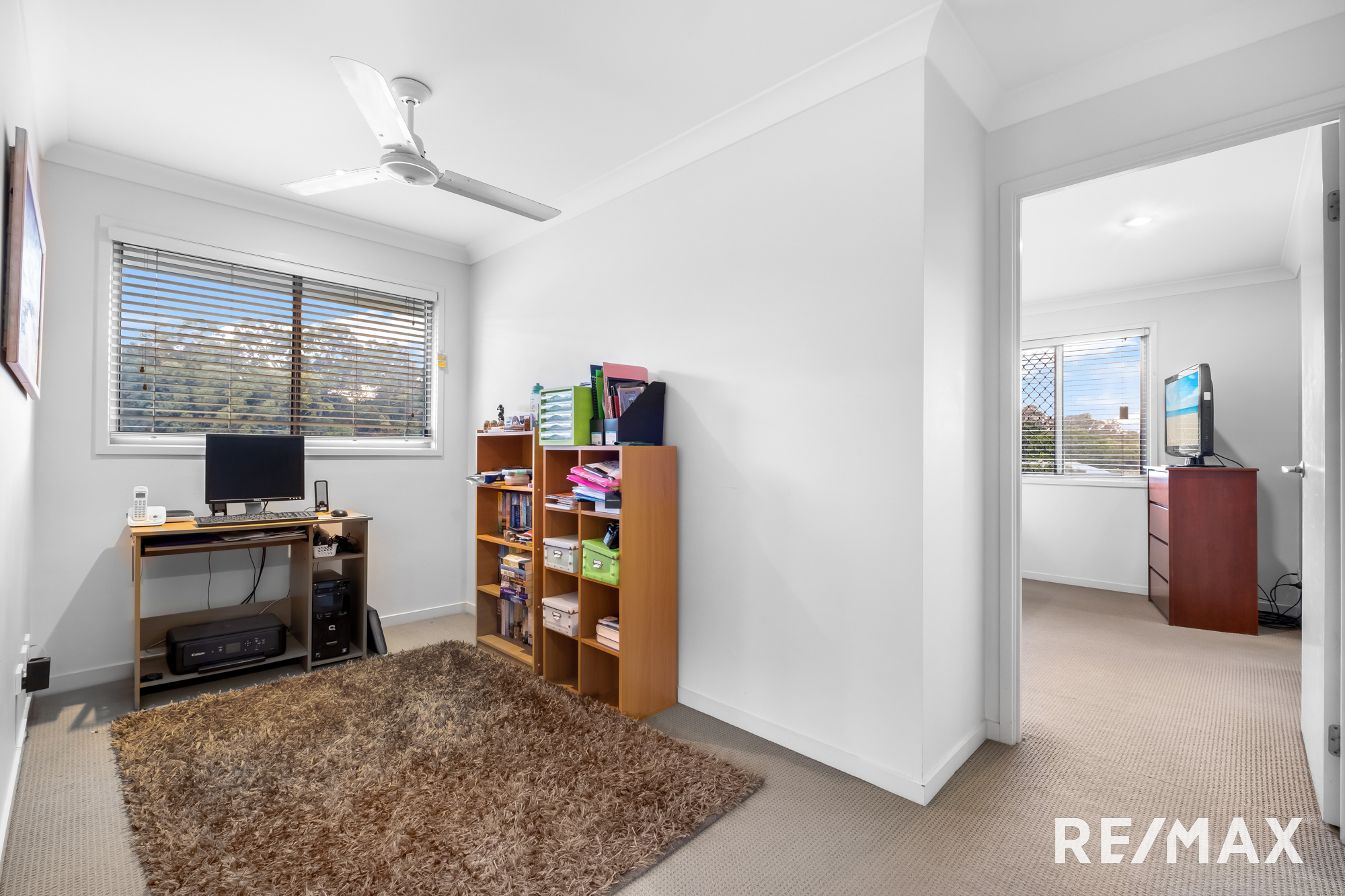 Venture upstairs to find three well-appointed bedrooms. The master bedroom boasts an ensuite with a walk-in shower and air conditioning, providing a cool and comfortable retreat. All bedrooms are fitted with ceiling fans and built-in wardrobes, ensuring ample storage space. The main bathroom includes a bathtub for ultimate relaxation. The upper level also includes a bonus second living area perfect for a home office, play area or a chair to sit and read.