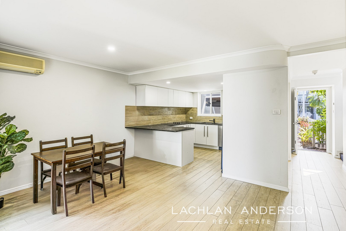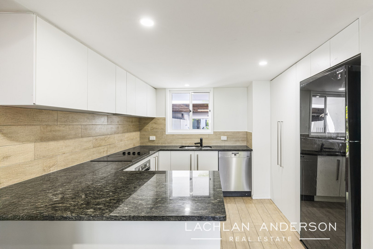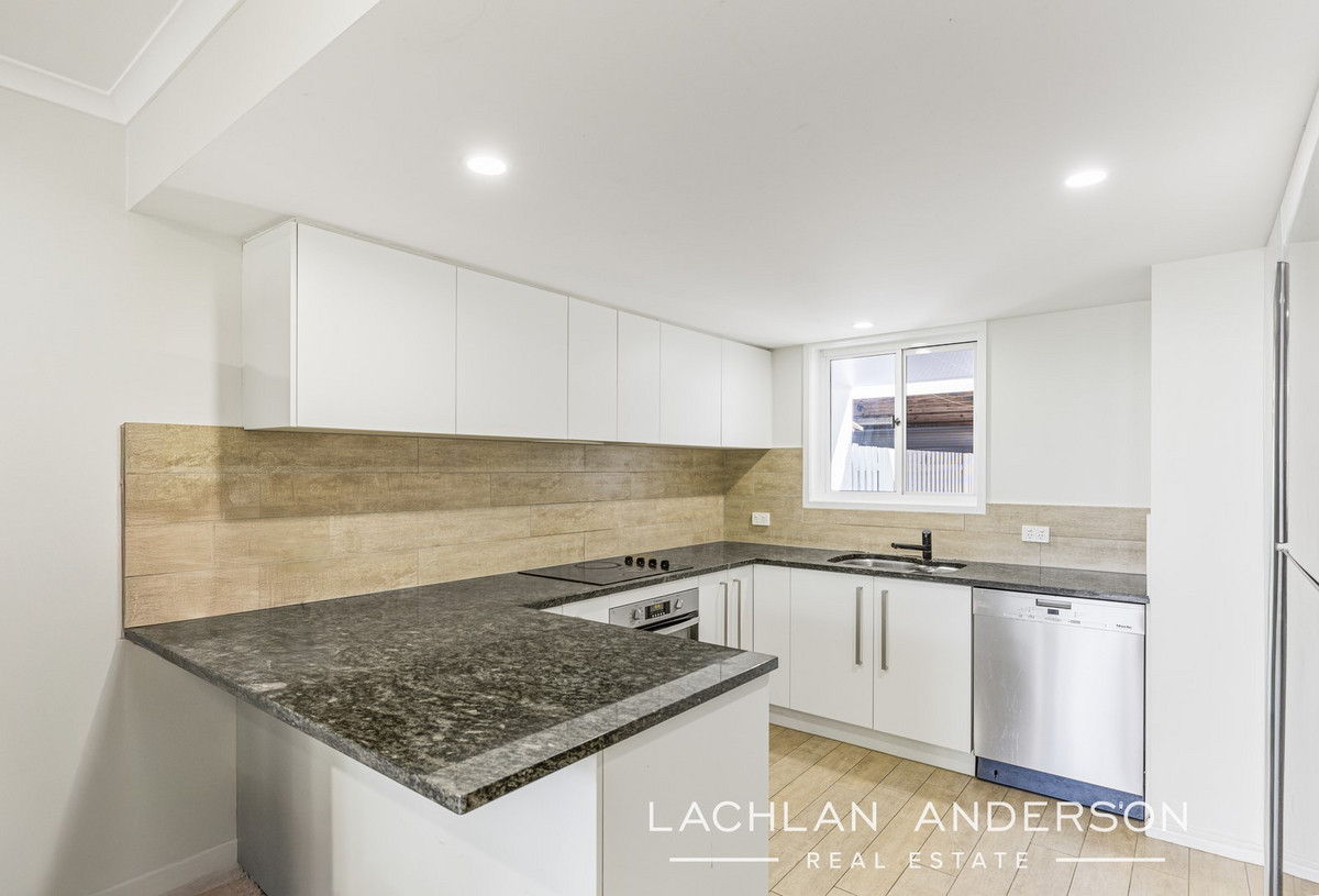 The lower level offers a spacious air-conditioned open plan living and dining area providing a sense of space and intimately connects with the alfresco entertaining area. The kitchen features an abundance of cupboard and bench space.