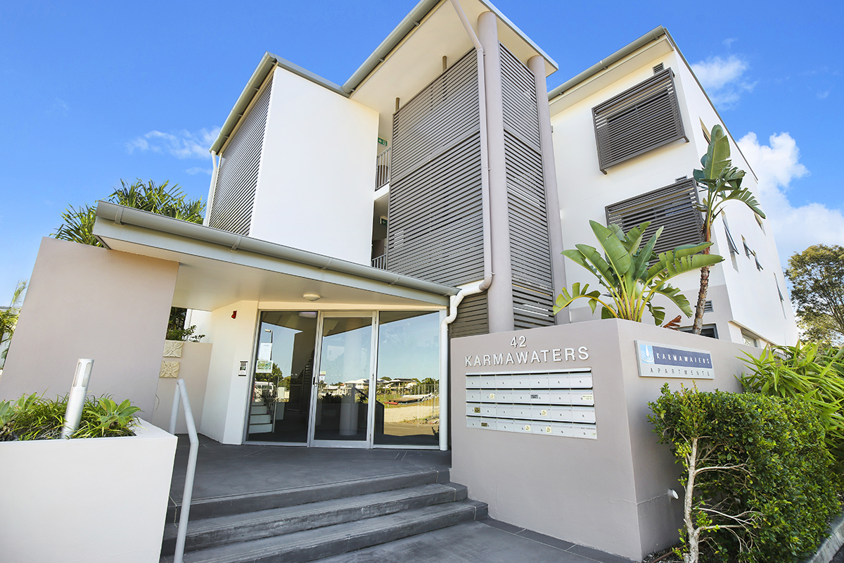 Open Saturday 5th October This First Level Apartment in the sought after "Karmawaters" complex is located in the heart of Pelican Waters.