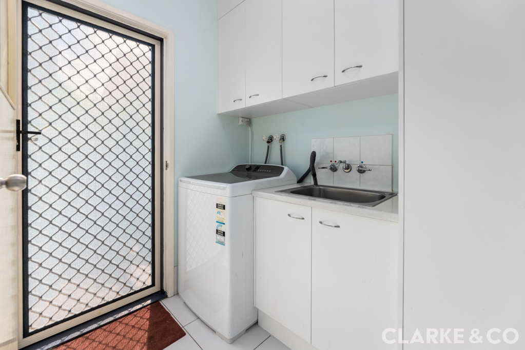 - 9-foot high ceilings: Enhance the sense of space and comfort downstairs. - Recently stained rear deck with retractable awning: Ideal for outdoor relaxation and entertaining. - Large, air-conditioned bedroom: Offers a perfect retreat after a long day. - Spacious laundry with ample storage: Practical and convenient for everyday needs. - Prime location: Close to shops, schools, and the beach, offering a lifestyle of ease and enjoyment.