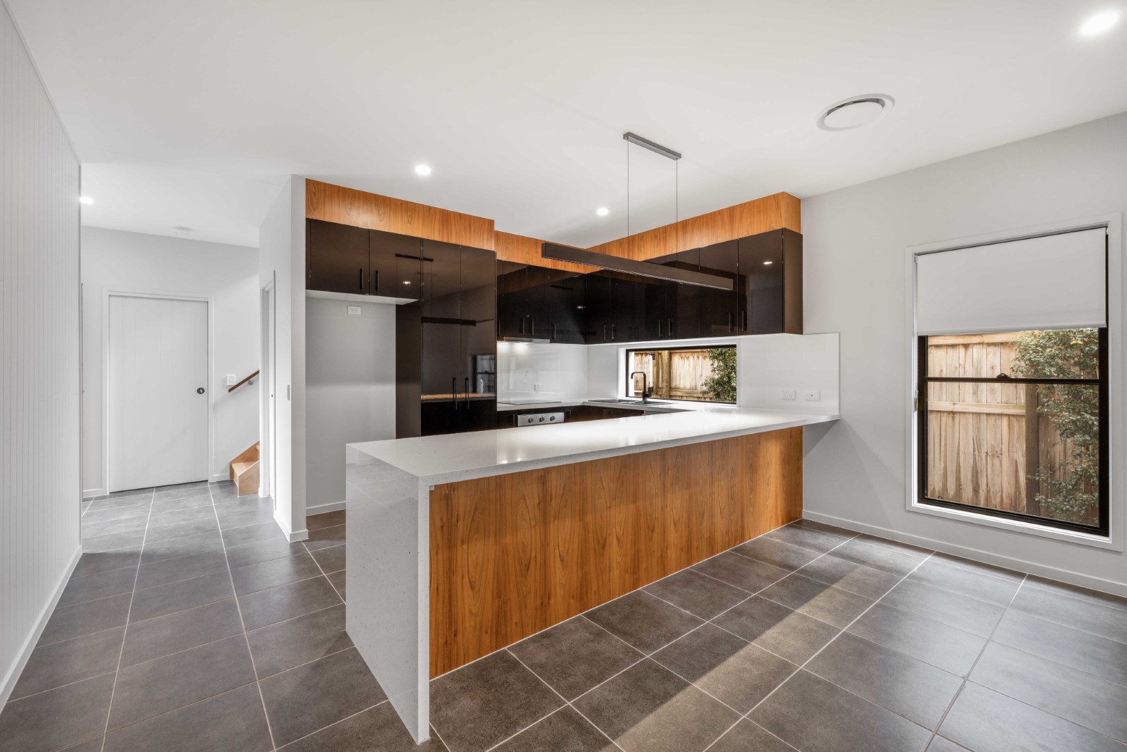 ~ Quality timber staircase and American Walnut finishes in the kitchen ~ Private east-facing courtyard, low maintenance. Internal access to parking ~ Short walk to beach, shops, cafes and schools