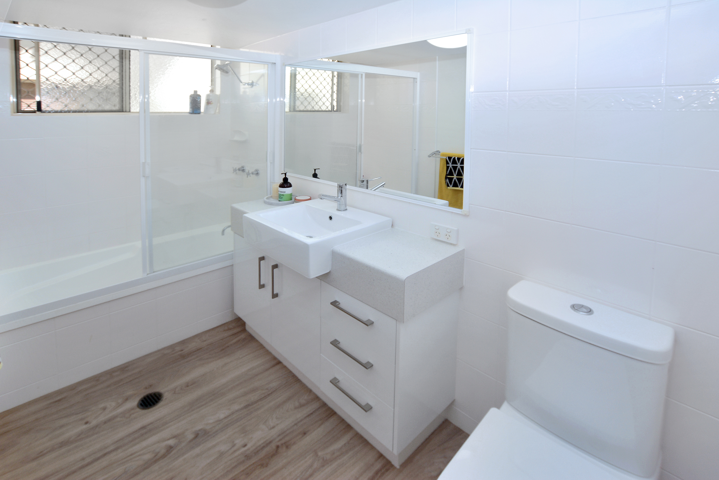 ● Spacious Master Bedroom: Includes an ensuite and ceiling fan. ● Second Queen-Sized Bedroom: Direct access to the expansive rooftop deck. ● Renovated Main Bathroom: Features a shower over bath. ● Open Plan Kitchen: Equipped with a red splashback, island bench, and stone benchtops. ● Combined Living/Dining Area: Tiled floors and ceiling fans ensure comfort. ● North-Facing Balcony: Offers captivating water views. ● Massive Rooftop Deck: Located on the southern side, perfect for entertaining. ● Single Car Garage: Includes remote access for convenience.