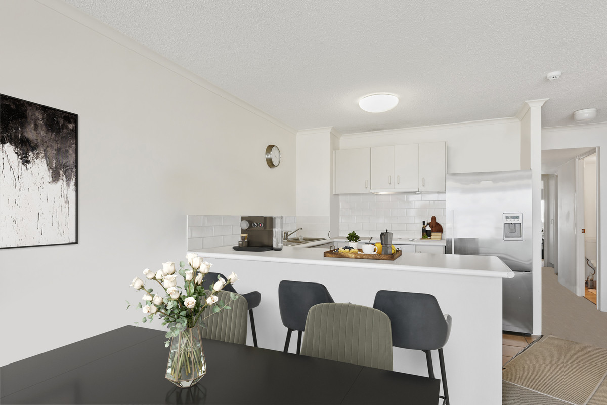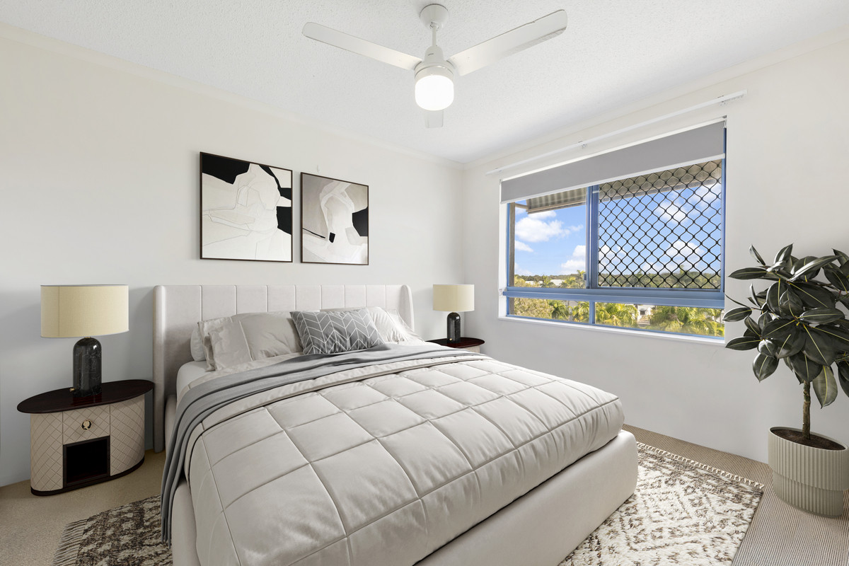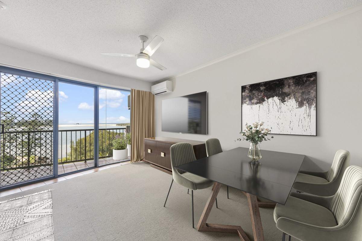 • 2 bedrooms, 2 bathrooms, open plan living/dining • Balcony with stunning vista across passage & beyond • Rooftop terrace with ocean, CBD, and hinterland views • Secure parking for one vehicle, onsite visitor parking • Heated inground pool & spa, communal BBQ areas • Direct gated access to flat pedestrian path to CBD • Walk to shopping, dining, parks, tavern and beaches • Currently tenanted, could suit investor • Some images feature virtual furniture for illustration purposes only