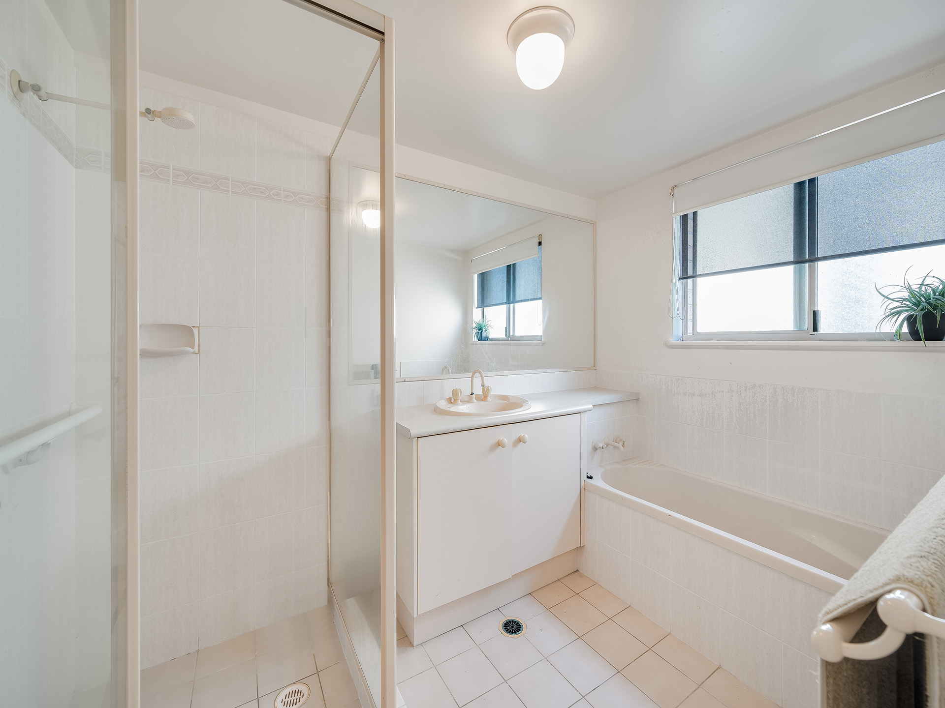 The two spacious bedrooms come with large built-in robes and ceiling fans. A standout feature is the covered balcony, ideal for enjoying morning coffee while taking in the sea breeze and ocean glimpses in complete comfort.