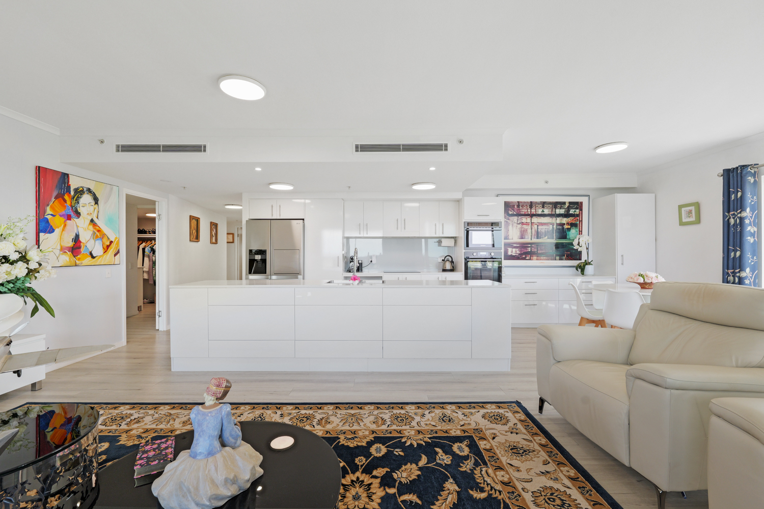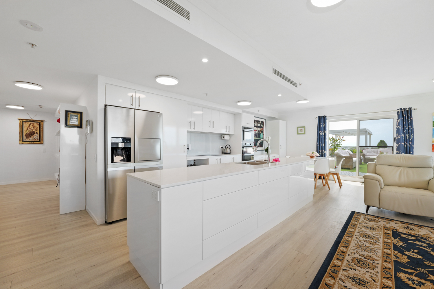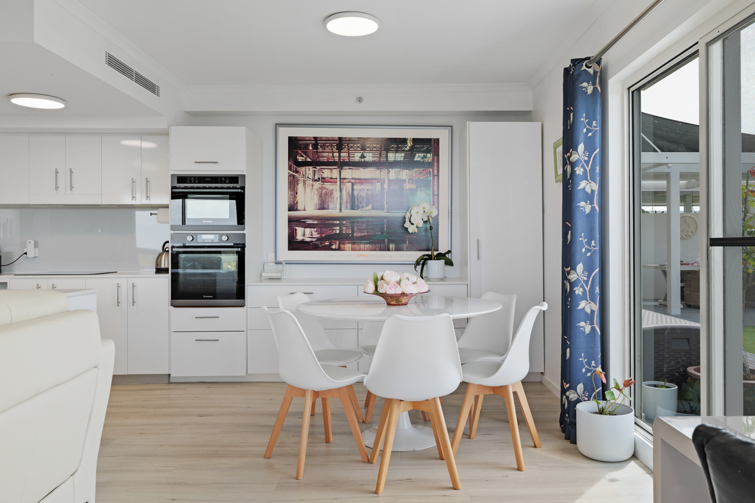 The recently renovated interior showcases open-plan living and dining at its best, with its centrally located modern kitchen and new appliances.
