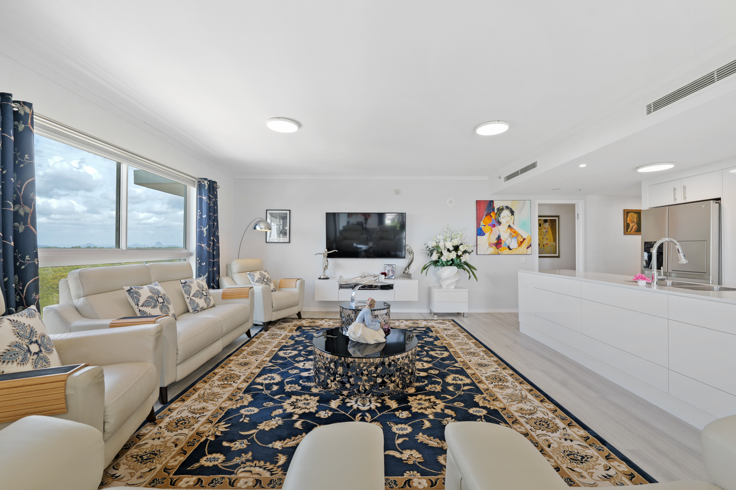 Seeing Is Believing This magnificent 3 bedroom, 2 ½ bathroom sub-penthouse apartment with its 270-degree uninterrupted views over Pelican Waters, the ocean, the hinterland and Glass House Mountains, offers an astute buyer the opportunity to acquire a prestigious property with a 212sqm entertaining deck accessible from every room.