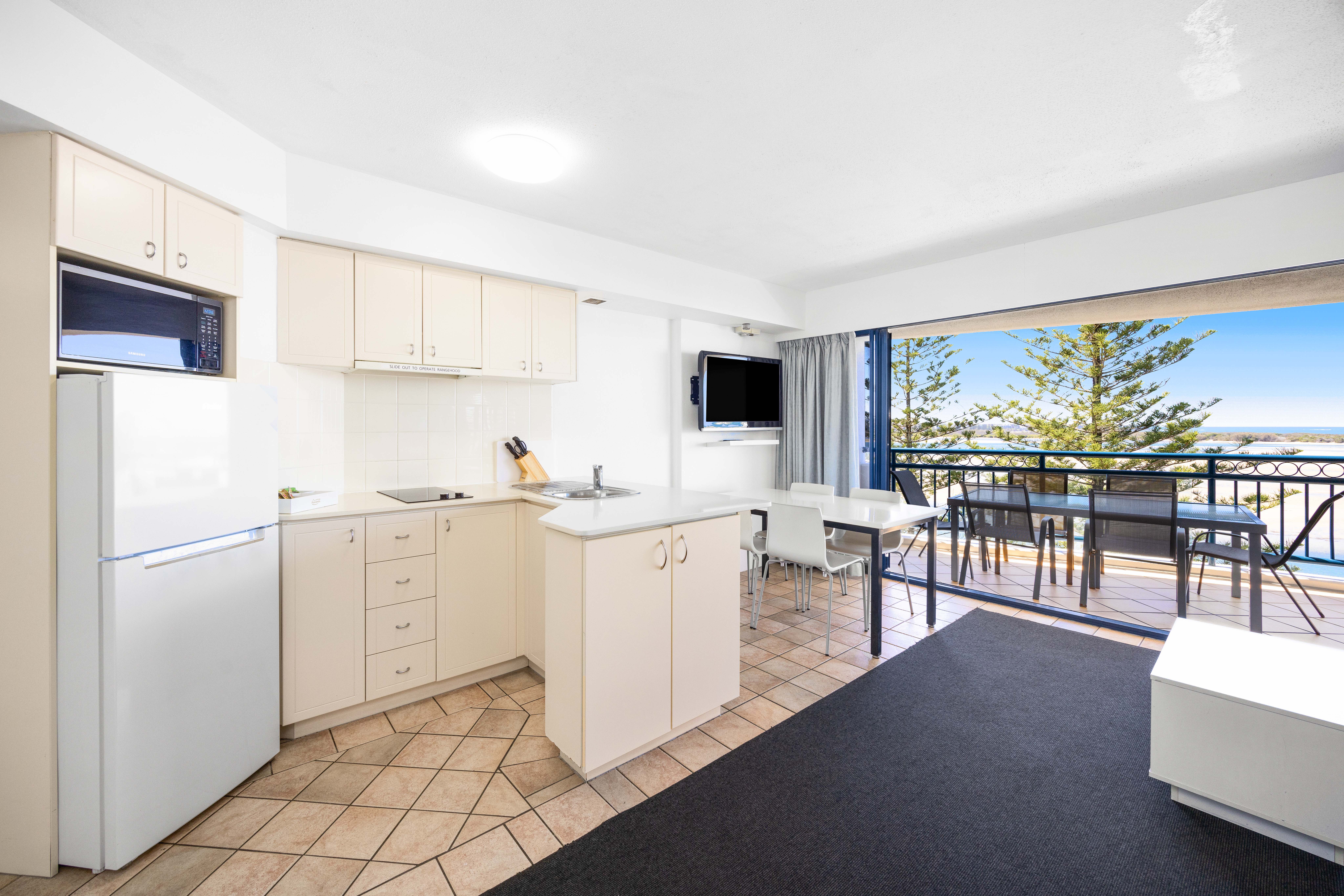 The unit is bathed in natural light, offering magnificent views of the ocean to the east from the living area, master bedroom, and sizable balcony, complimented by the awe-inspiring sunsets over the Glasshouse Mountains.