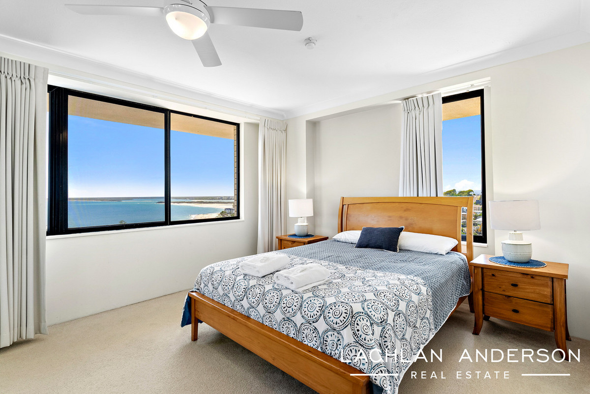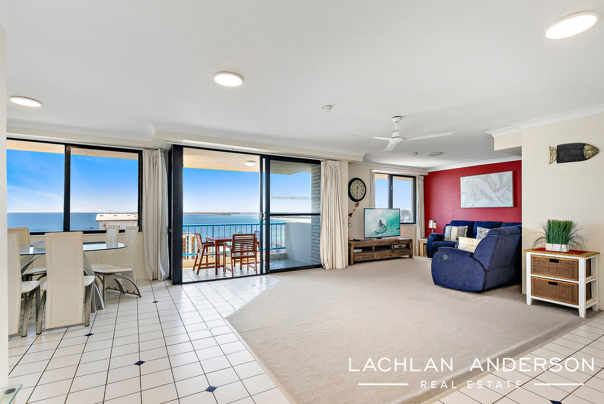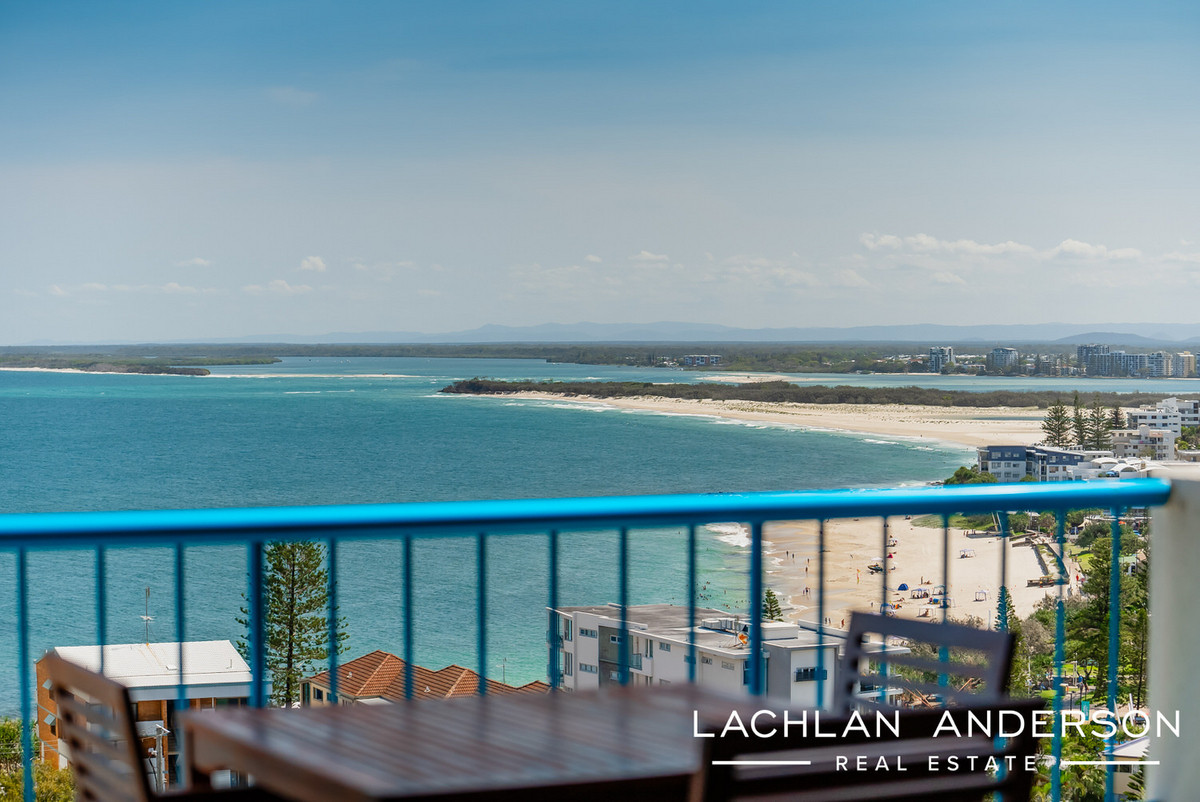 Panoramic views showcase the expansive ever changing and sweeping coastline from Bribie Island across the shipping channel to Moreton Island and beyond. The spacious interiors complement the balcony where you can enjoy entertaining on a grand scale, or intimate alfresco dining providing the perfect backdrop over Kings Beach for any occasion.