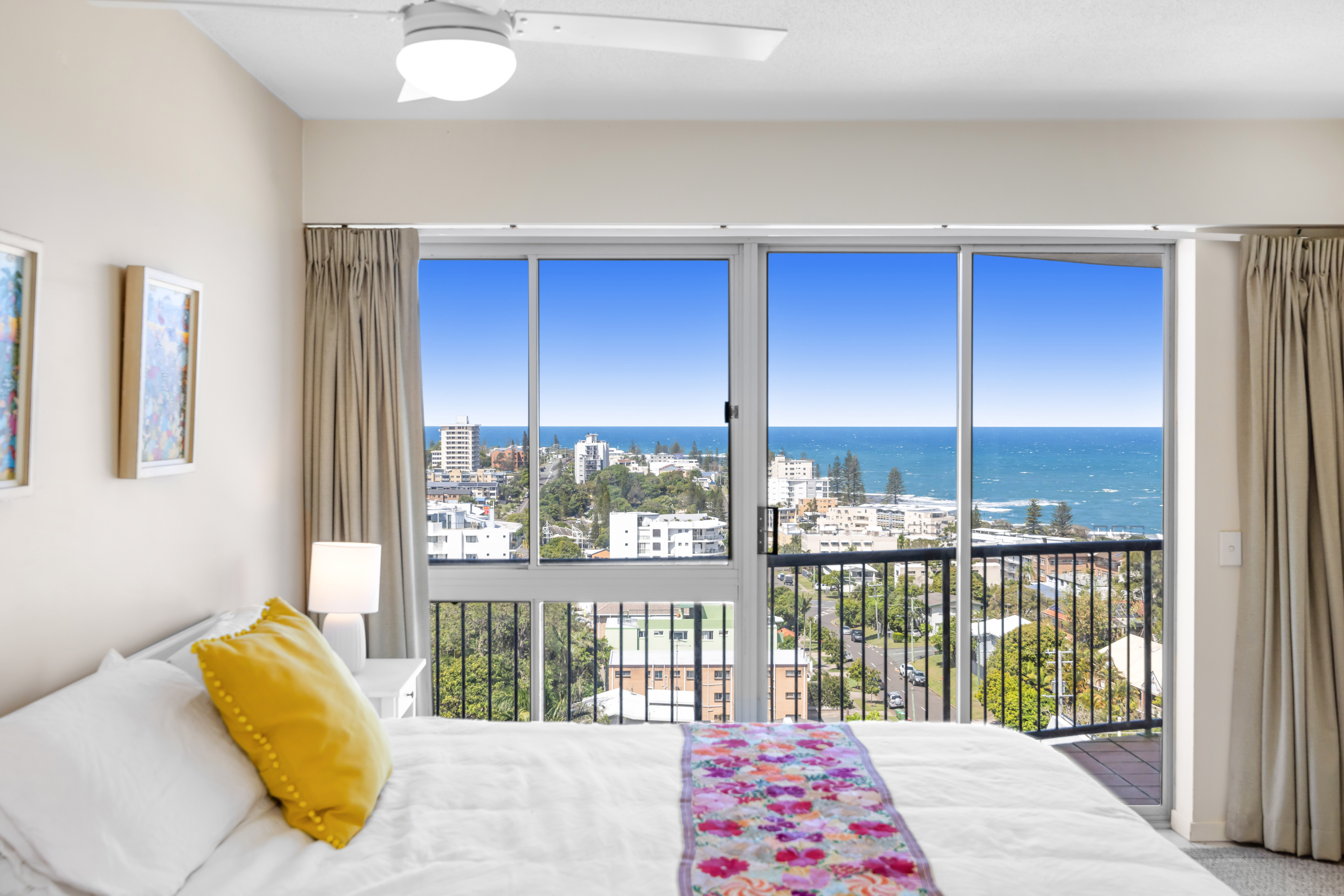Luxurious 136 sqm residence with an eastern aspect offering coveted coastline views. Expansive, light-filled living spaces and a spacious balcony. Ceiling fans through out Lift