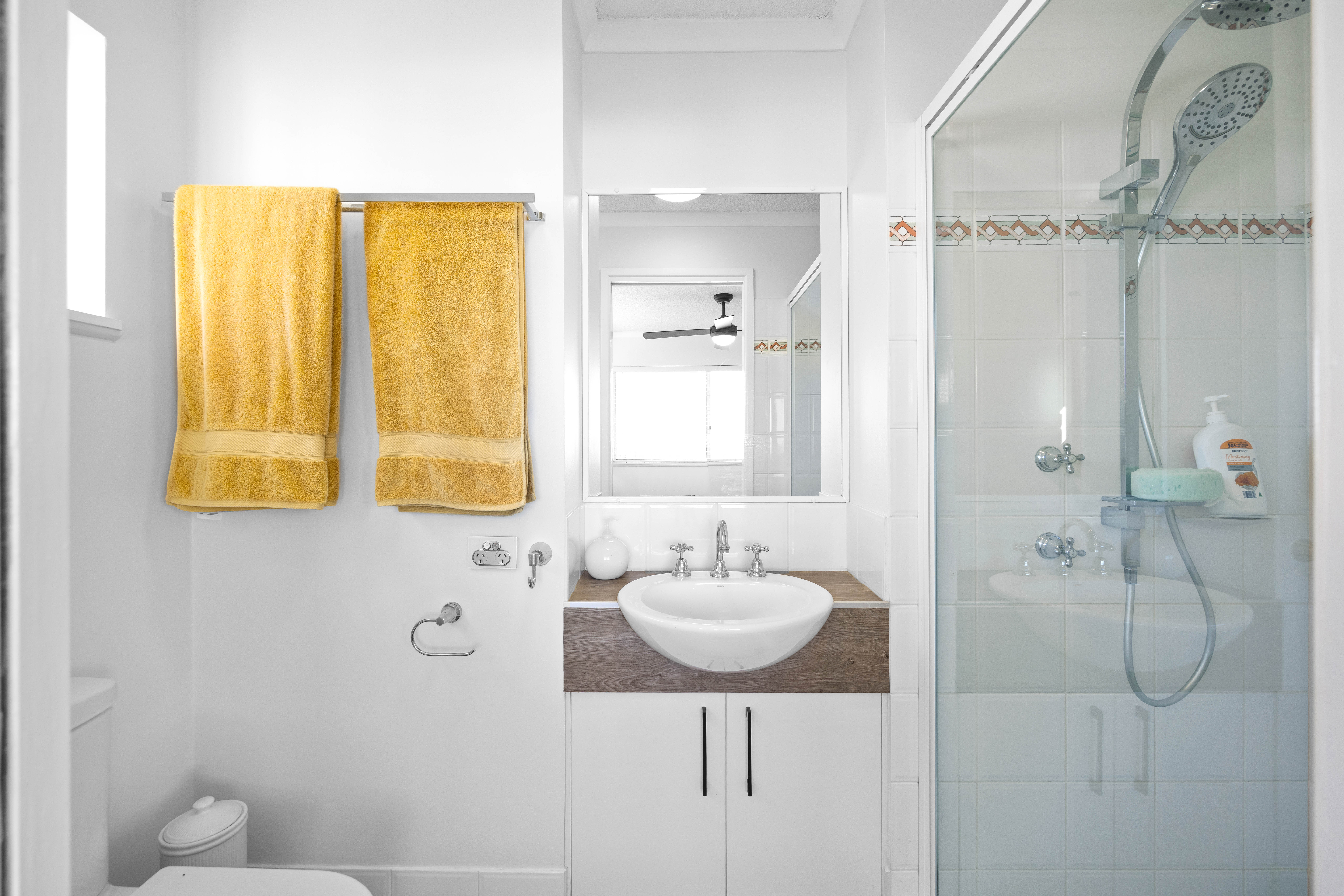 Upon crossing the threshold, the radiant open plan living and dining space welcomes you, drenched in sunlight and promising an atmosphere of warmth and conviviality. Both bedrooms exude comfort, complete with built-in wardrobes that offer copious storage solutions. The master bedroom benefits from an ensuite, ensuring privacy and convenience. Meanwhile, the air conditioning in the main living area and ceiling fans throughout the unit provide a cool respite from the balmy Queensland climate.