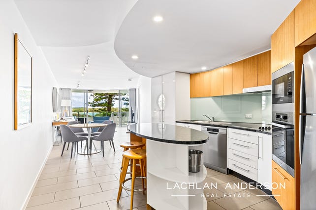 Presenting the ultimate in high-end living this generous apartment offers a custom designed contemporary interior, an open plan kitchen with sleek timber cabinets, island bench and Miele appliances. The open living space seamlessly leads you beyond disappearing glass doors where the panoramic ocean views welcome you on a daily basis. Occupying the first level with lift access with ducted air conditioning throughout.