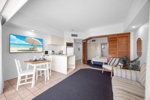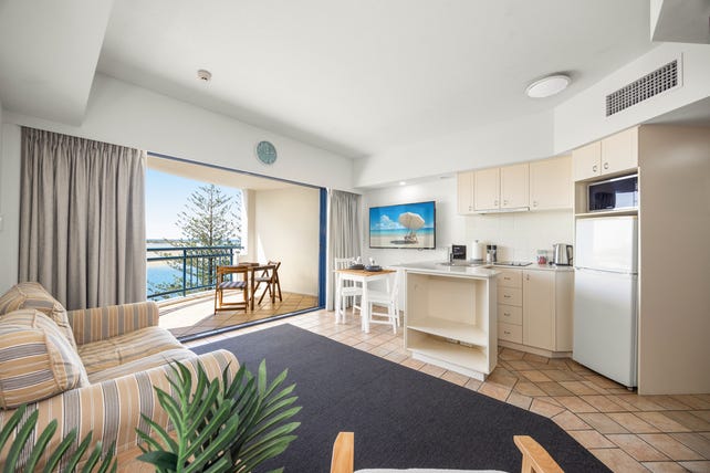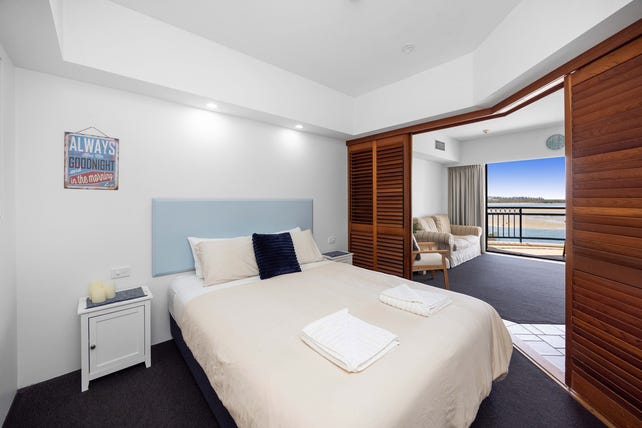 Step inside and be captivated by the breathtaking vistas of Pumicestone Passage, Caloundra, and the Pacific Ocean. The Studio-apartment features a spacious bedroom with built-in robes and ensuite complete with a spa bath. The open living and dining area seamlessly flows onto a generous balcony, perfect for entertaining or simply unwinding while soaking up the mesmerizing scenery.